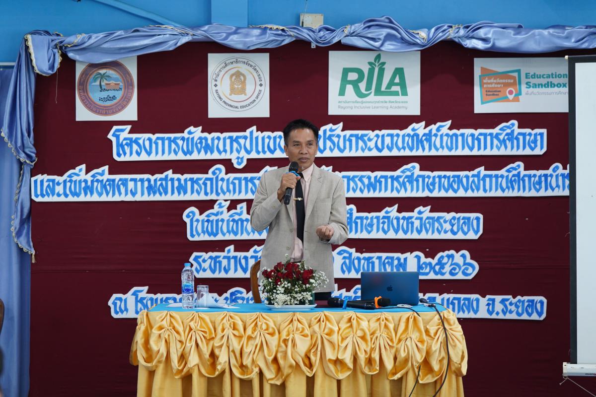 วันที่ 7 สิงหาคม 2566 เวลา 09.30 น. นายประสานต์ พฤกษาชาติ รองนายกองค์การบริหารส่วนจังหวัดระยอง(2) เป็นประธานเปิดโครงการพัฒนารูปแบบการปรับกระบวนทัศน์ทางการศึกษาและเพิ่มขีดความสามารถในการพัฒนานวัตกรรมการศึกษาของสถานศึกษานำร่องในพื้นที่นวัตกรรมการศึกษาจังหวัดระยอง พร้อมด้วยนายธงชัย มั่นคง ผู้เชี่ยวชาญพิเศษด้านการศึกษา ศาสนาและวัฒนธรรม,สิบโทชัยยนันต์ เกิดเหมาะ ศึกษาธิการจังหวัดระยอง,สถาบัน RILA,ผู้เข้าร่วมอบรมและผู้ที่เกี่ยวข้องเข้าร่วมโครงการอย่างพร้อมเพรียง ณ โรงแรมเดอะปรินซ์เซสส์ บีช ระยอง ตำบลกร่ำ อำเภอแกลง จังหวัดระยอง
