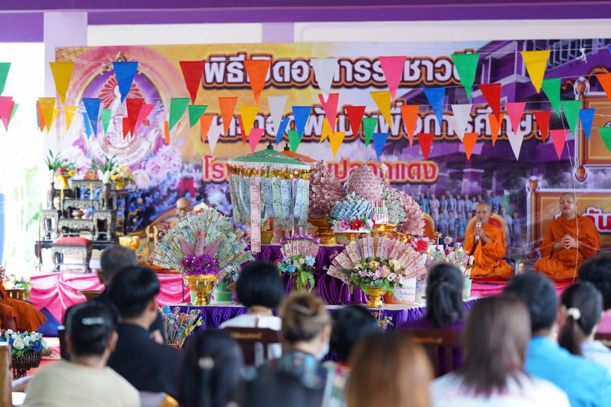 โดยในช่วงเช้าได้มีพิธีทอดผ้าป่าการศึกษา พร้อมเปิดอาคารเรียน "อาคารราชาวดี" โดยมีนายสกนธ์ กรกฎ นายอำเภอปลวกแดง ร่วมพิธีทอดผ้าป่าการศึกษา พร้อมร่วมเป็นประธานในพิธีเปิดอาคารราชาวดี ณ โรงเรียนบ้านปลวกแดง อำเภอปลวกแดง จังหวัดระยอง