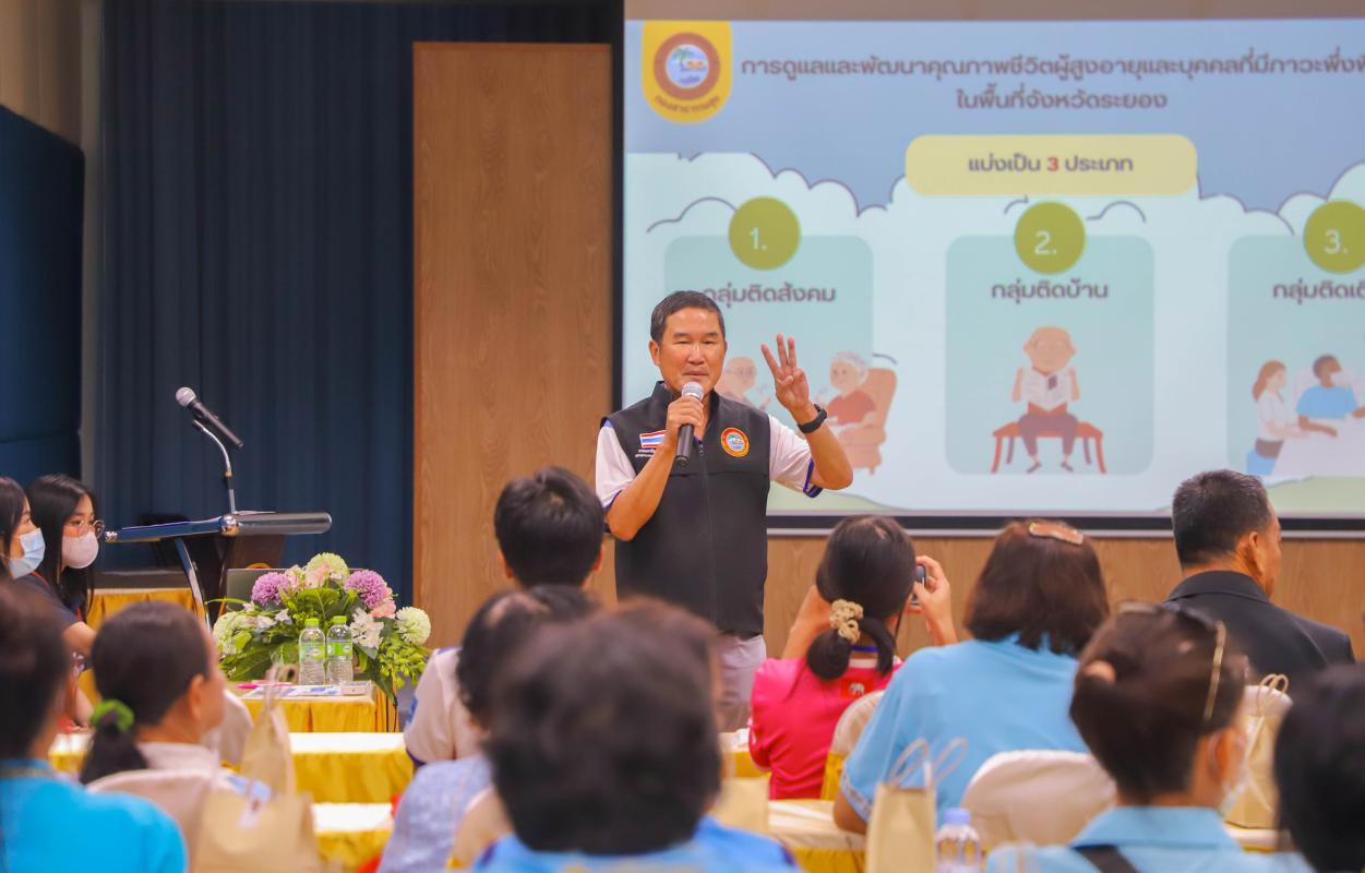 วันที่ 19 กันยายน 2566 เวลา 09.30 น. นายกิตติ เกียรติ์มนตรี รองนายกองค์การบริหารส่วนจังหวัดระยอง(1) ให้เกียรติเป็นประธานในการกล่าวต้อนรับคณะศึกษาดูงานจากองค์การบริหารส่วนจังหวัดตราด พร้อมด้วยคณะผู้บริหาร สมาชิกสภาองค์การบริหารส่วนจังหวัดระยอง ผู้อำนวยการกอง หัวหน้าส่วนราชการ และเจ้าหน้าที่ที่เกี่ยวข้อง ร่วมให้การต้อนรับอบจ.ตราด นำโดยนายนิธิศ ผดุงลักษณ์ หัวหน้าสำนักปลัดองค์การบริหารส่วนจังหวัดตราด ภายใต้” โครงการพัฒนาศักยภาพและทัศนศึกษาดูงานผู้สูงอายุจังหวัดตราด ประจำปี 2566” เป็นรุ่นที่ 2 โดยมีผู้เข้าร่วมโครงการดังกล่าวจำนวน 225 คน ซึ่งในการบรรยายดังกล่าว ได้รับเกียรติจากนายแพทย์ชัยวัฒน์ จัตตุพร เลขานุการนายกองค์การบริหารส่วนจังหวัดระยองและนายอรุณ วิชกิจ ผู้เชี่ยวชาญด้านการวางแผนและวิเคราะห์นโยบาย เป็นวิทยากรให้ความรู้ ณ ห้องประชุม 3 ชั้น 3 อบจ.ระยอง