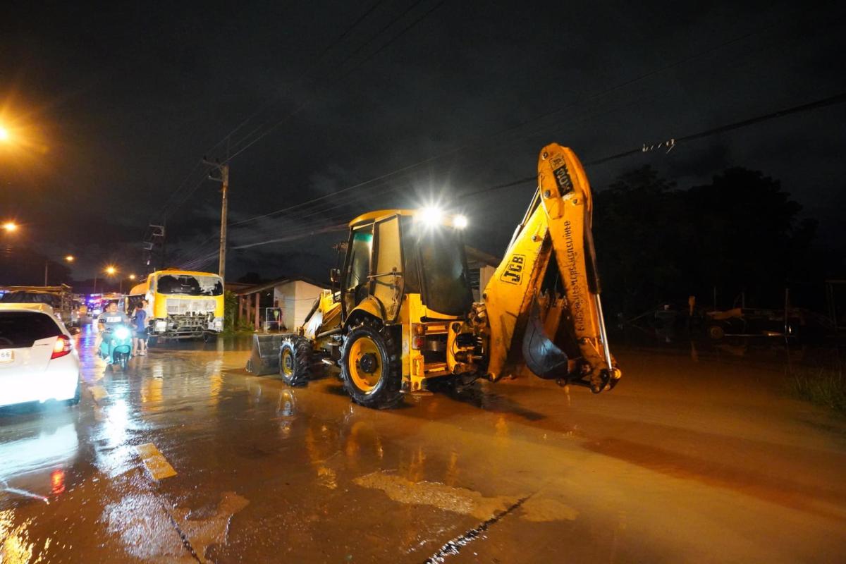 อบจจ.ระยอง ได้นำรถบรรทุก 6 ล้อ จำนวน 2 คัน เข้าช่วยเหลือและขนย้ายสิ่งของผู้ประสบภัยน้ำท่วมที่ติดอยู่ภายในบ้าน บริเวณหมู่บ้านริมธาร ตำบลทับมา และชุมชนหนองโพรง หมู่ 6 พร้อมกับส่งรถ JCB จำนวน 1 คันเพื่อช่วยกำจัดสิ่งกีดขวางในพื้นที่ สถานการณ์น้ำท่วมในขณะนี้ยังมีผู้ประสบภัยที่ยังรอการช่วยเหลืออีกจำนวนมาก ซึ่งในขณะนี้หน่วยงานที่ลงพื้นที่ช่วยเหลือกำลังเร่งมือและประสานงานหน่วยงานที่เกี่ยวข้อง เข้าช่วยเหลือผู้ประสบภัยในพื้นที่อื่นต่อไป