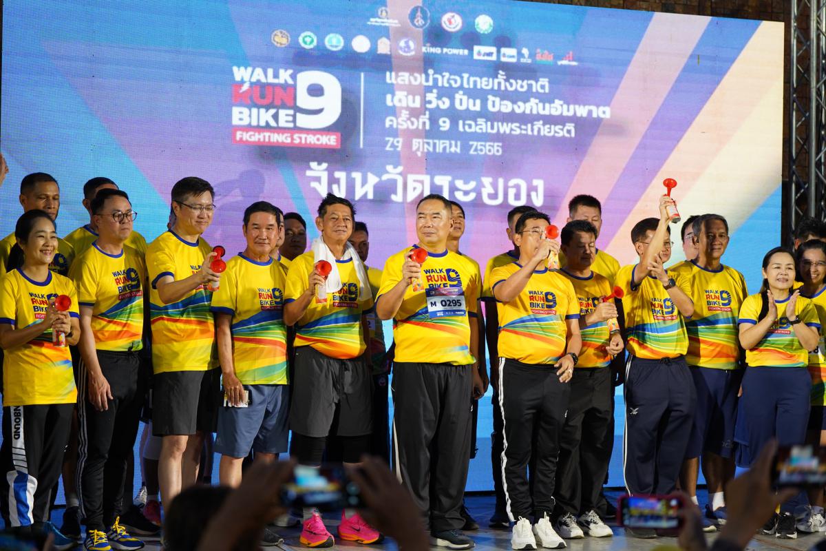 วันที่ 29 ตุลาคม 2566 เวลา 05.40 นายไตรภพ วงศ์ไตรรัตน์ ผู้ว่าราชการจังหวัดระยอง ให้เกียรติเป็นประธานในพิธีเปิดกิจกรรมงาน แสงนำใจไทยทั้งชาติ เดิน วิ่ง ปั่น ป้องกันอัมพาตครั้งที่ 9 เฉลิมพระเกียรติ โดยมีนายปิยะ ปิตุเตชะ นายกองค์การบริหารส่วนจังหวัดระยอง พร้อมด้วย นายประสานต์ พฤกษาชาติ รองนายกองค์การบริหารส่วนจังหวัดระยอง(2),นายแพทย์ชัยวัฒน์ จัตตุพร เลขานุการนายกองค์การบริหารส่วนจังหวัดระยอง,นางสาวจิตรลดา ศรีรัตนโช สมาชิกสภาองค์การบริหารส่วนจังหวัดระยองเขต 2 อ.เมือง,หัวหน้าส่วนราชการ หน่วยงานภาครัฐและเอกชน ผู้เข้าร่วมกิจกรรม เข้าร่วมกิจกรรมอย่างพร้อมเพรียง ณ สนามกีฬากลางจังหวัดระยอง