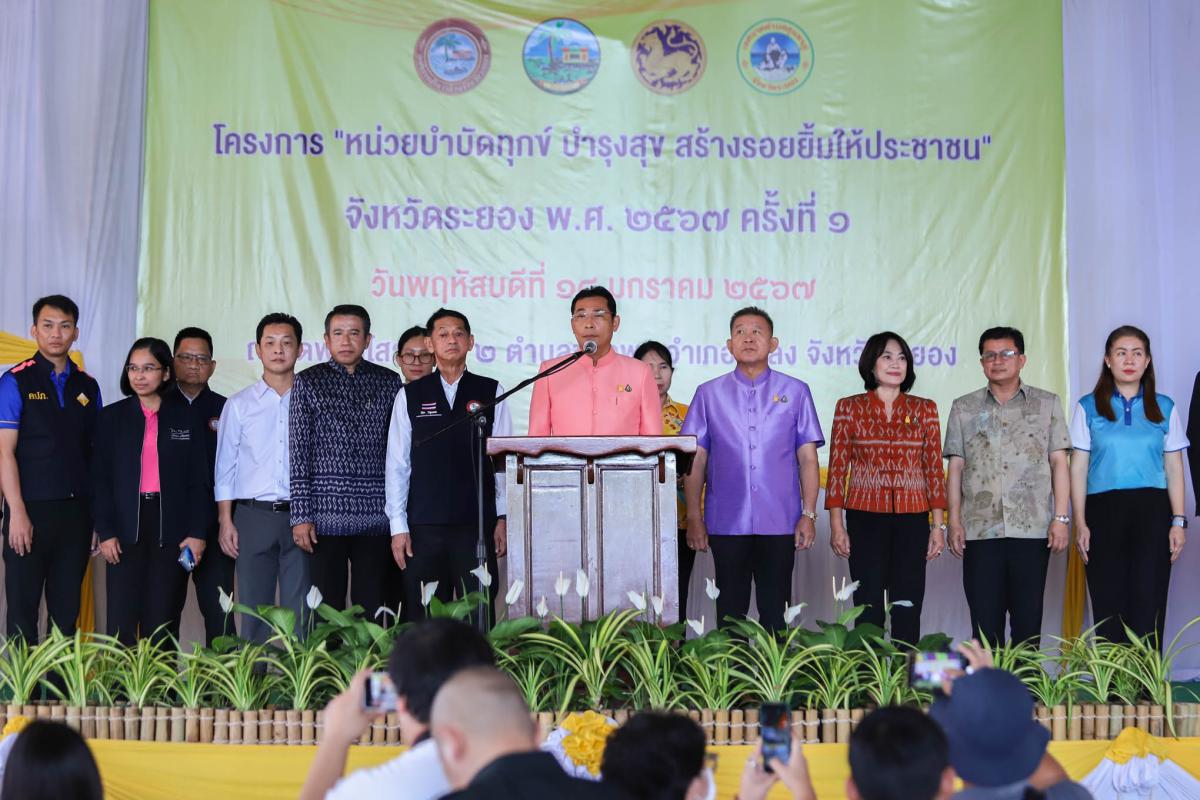 วันที่ 18 มกราคม 2567 เวลา 09.00 น. องค์การบริหารส่วนจังหวัดระยอง นำโดย นายปิยะ ปิตุเตชะ นายกองค์การบริหารส่วนจังหวัดระยอง พร้อมด้วย คณะผู้บริหาร สมาชิกสภาองค์การบริหารส่วนจังหวัดระยอง หัวหน้าส่วนราชการ และเจ้าหน้าที่ที่เกี่ยวข้องเข้าร่วมโครงการ อบจ.พบประชาชน ครั้งที่ 1/2567 ณ วัดพลงไสว อำเภอแกลง จังหวัดระยอง โดยมี นายไตรภพ วงศ์ไตรรัตน์ ผู้ว่าราชการจังหวัดระยอง เป็นประธานในพิธี พร้อมคณะ นำหน่วยบริการเคลื่อนที่ภายใต้โครงการ “หน่วยบำบัดทุกข์ บำรุง สร้างรอยยิ้มให้กับประชาชน” ซึ่งโครงการดังกล่าวมีวัตถุประสงค์ เพื่อแก้ไขปัญหาความเดือดร้อนให้กับประชาชน และนำกิจกรรม, งานบริการของส่วนราชการ และหน่วยงานต่างๆ ออกให้บริการประชาชนนอกสถานที่ ภายในงานได้มีกิจกรรมต่างๆ เช่น การมอบข้าวของเครื่องอุปโภคบริโภคผู้ยากไร้ การมอบทุนการศึกษาแก่นักเรียน การตรวจสุขภาพ อุดฟันถอนฟัน การจำหน่ายสินค้าราคาถูก กิจกรรมการแจกต้นไม้ และกิจกรรมอื่นๆอีกมากมาย โดยในช่วงบ่ายเป็นกิจกรรมการลงพื้นที่ตรวจเยี่ยมโรงพยาบาลส่งเสริมสุขภาพตำบลชากพง และตำบลบ้านสองสลึง พร้อมร่วมรับฟังปัญหาต่างๆ ในพื้นที่เขตอำเภอแกลง จังหวัดระยอง
