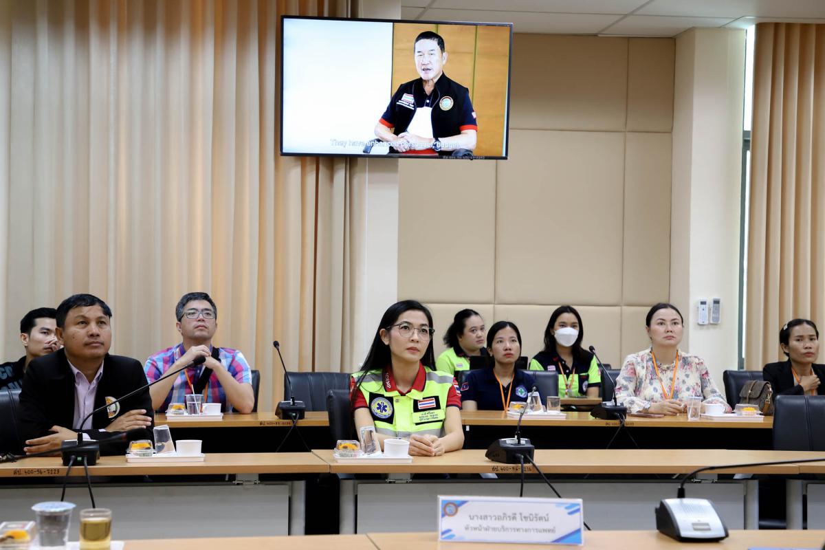 สถาบันการแพทย์ฉุกเฉินแห่งชาติ ได้ร่วมมือกับกรมความร่วมมือระหว่างประเทศ กระทรวงการต่างประเทศ และองค์การความร่วมมือระหว่างประเทศแห่งญี่ปุ่น (Japan International Cooperation Agency) ภายใต้โครงการ Third Country Third Country Training Programme กำหนด ให้มีการจัดฝึกอบรมหลักสูตร "Emergency Medical Services (EMS) Leadership and Management" ให้แก่ กลุ่มประเทศ CLMV (Cambodia Laos Myanmar Vietnam) วันที่ 22 กุมภาพันธ์ 2567 เวลา 09.00 น. โดย นายกิตติ เกียรติ์มนตรี รองนายกองค์การบริหารส่วนจังหวัดระยอง (1), นายแพทย์ชัยวัฒน์ จัตตุพร เลขานุการนายกองค์การบริหารส่วนจังหวัดระยอง, นายอรุณ วิชกิจ ผู้เชี่ยวชาญพิเศษด้านการวางแผนและวิเคราะห์นโยบาย, โรงพยาบาลส่งเสริมสุขภาพตำบล รก.ผอ.กองสาธารณสุข, พร้อมด้วย คณะผู้บริหาร และ ผู้ที่เกี่ยวข้องเข้าร่วมให้การต้อนรับคณะศึกษาดูงาน ณ ห้องประชุม 2 ชั้น 3 องค์การบริหารส่วนจังหวัดระยอง