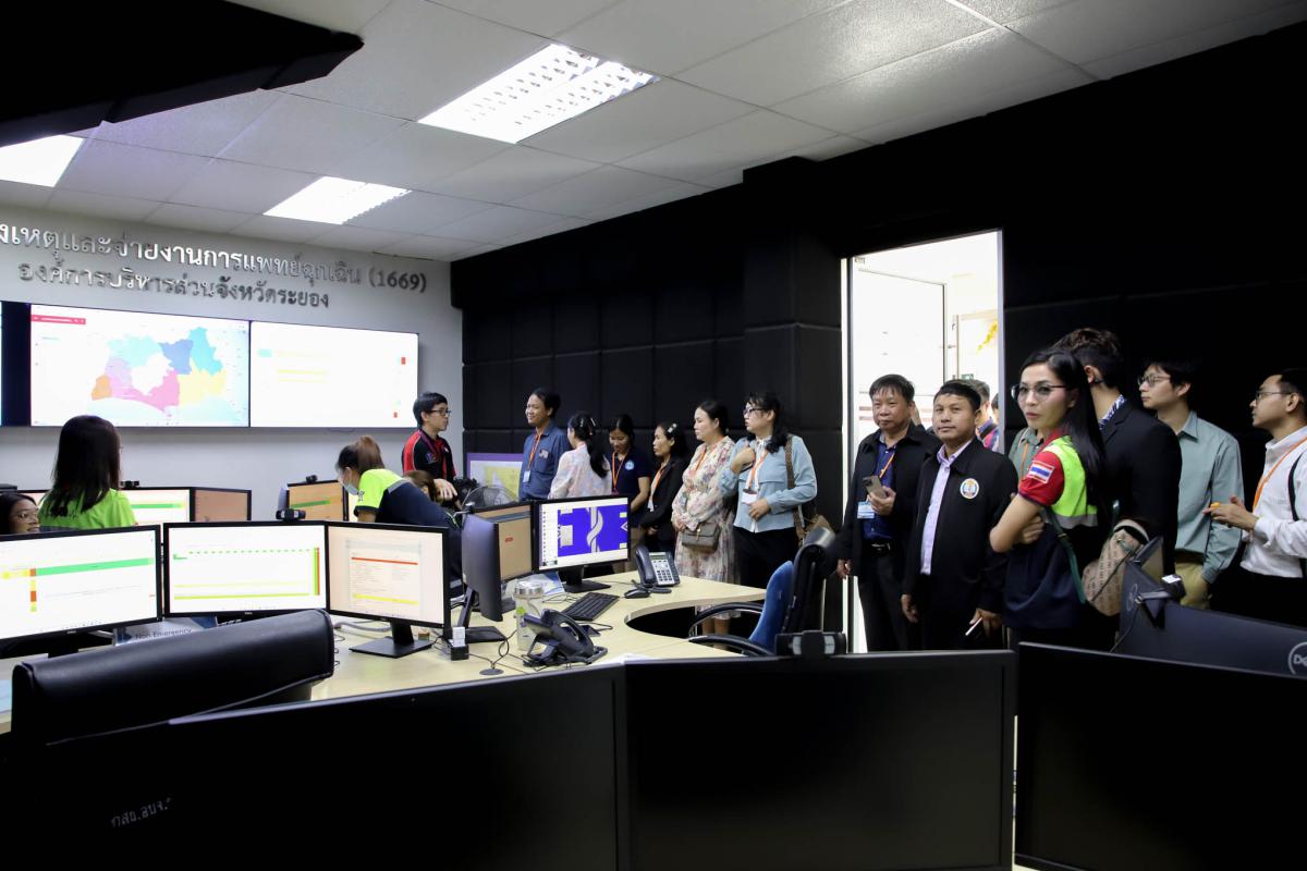 สถาบันการแพทย์ฉุกเฉินแห่งชาติ ได้ร่วมมือกับกรมความร่วมมือระหว่างประเทศ กระทรวงการต่างประเทศ และองค์การความร่วมมือระหว่างประเทศแห่งญี่ปุ่น (Japan International Cooperation Agency) ภายใต้โครงการ Third Country Third Country Training Programme กำหนด ให้มีการจัดฝึกอบรมหลักสูตร "Emergency Medical Services (EMS) Leadership and Management" ให้แก่ กลุ่มประเทศ CLMV (Cambodia Laos Myanmar Vietnam) โดยมีวัตถุประสงค์เพื่อให้เกิดการพัฒนาทางด้านการแพทย์ฉุกเฉินในกลุ่มประเทศ CLMV และเกิดการบูรณาการ ความร่วมมือระหว่างหน่วยงานต่างๆ ที่เกี่ยวข้องอย่างเป็นระบบในการบริหารจัดการระบบการแพทย์ฉุกเฉิน ในกลุ่มประเทศ CLMV โดยพิจารณาแล้วเห็นว่าองค์การบริหารส่วนจังหวัดระยอง มีศักยภาพในการเป็น แหล่งเรียนรู้ให้แก่ผู้แทนจากกลุ่มประเทศดังกล่าวได้เป็นอย่างดี จึงขอความอนุเคราะห์เข้าเยี่ยมชมและศึกษาดูงาน พร้อมวิทยากรบรรยายในหัวข้อ “การดำเนินงานและบริหารจัดการระบบการแพทย์ฉุกเฉินขององค์การบริหาร ส่วนจังหวัดระยอง” พร้อมเยี่ยมชมการดำเนินงานในด้านต่างๆ ขององค์การบริหารส่วนจังหวัดระยอง มีคณะผู้เข้าร่วมการฝึกอบรมที่เป็น ผู้แทนจากกลุ่มประเทศข้างต้น ผู้บริหารและบุคลากรของสถาบันการแพทย์ฉุกเฉินแห่งชาติ รวมจำนวนทั้งสิ้น ๒๖ ท่าน