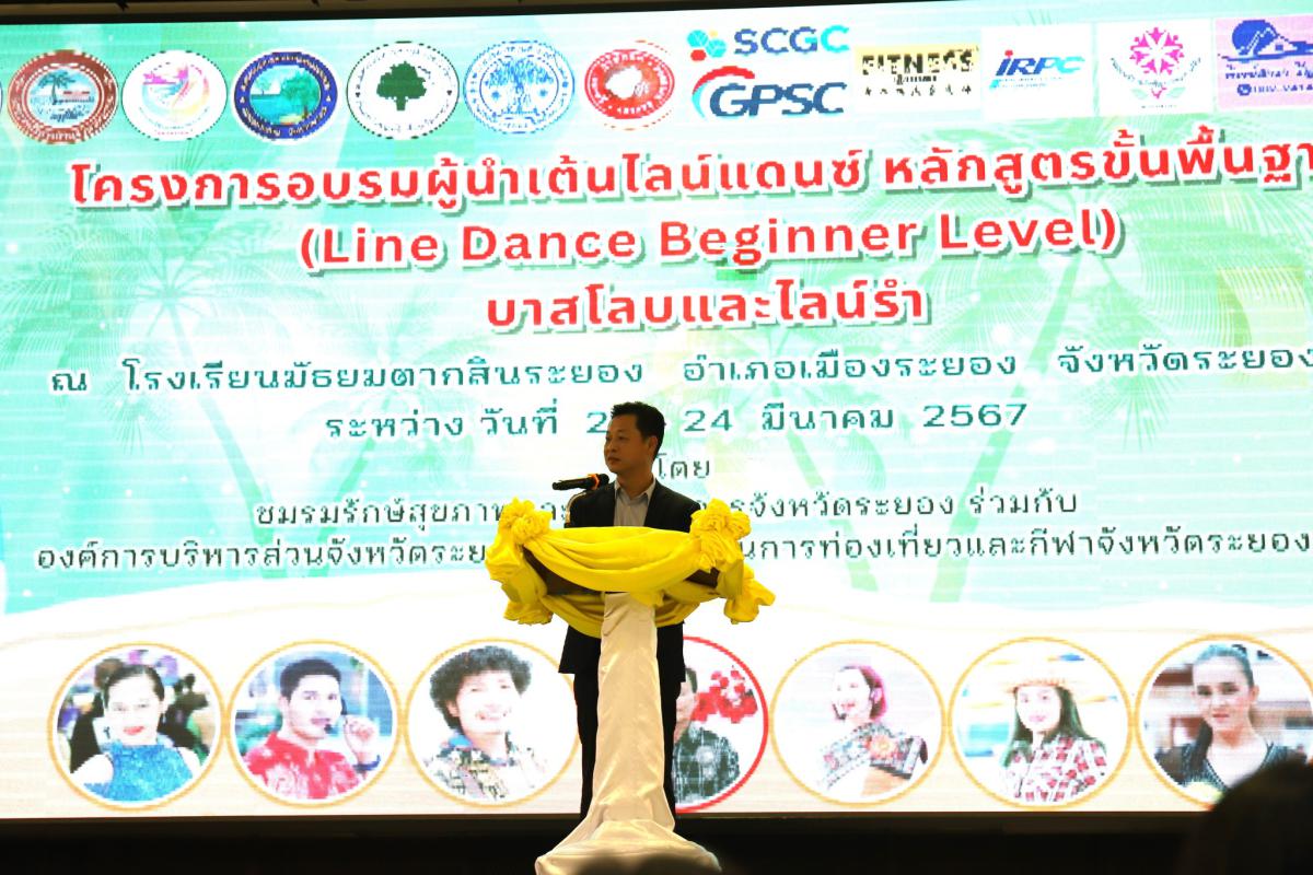 ด้วยชมรมรักษ์สุขภาพและนันทนาการจังหวัดระยอง ร่วมกับ องค์การบริหารส่วนจังหวัดระยอง และ สำนักงานการท่องเที่ยวและกีฬาจังหวัดระยอง ได้จัดโครงการอบรมผู้นำเต้นไลน์แดนซ์หลักสูตรขั้นพื้นฐาน บาสโลบและไลน์รำ ระหว่างวันที่ 22 – 24 มีนาคม 2567 ณ โรงเรียนมัธยมตากสินระยอง