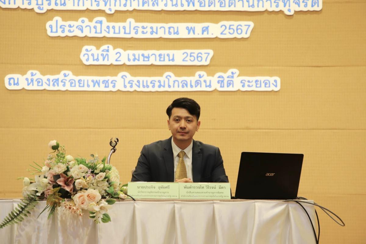 วันที่ 2 เมษายน 2567 เวลา 09.00 น. นายปิยะ ปิตุเตชะ นายกองค์การบริหารส่วนจังหวัดระยอง เป็นประธานเปิดโครงการบูรณาการทุกภาคส่วนเพื่อต่อต้านการทุจริต ประจำปีงบประมาณ พ.ศ.2567 โดยมีนายสุรินทร์ แสงทอง ปลัดองค์การบริหารส่วนจังหวัดระยอง เป็นผู้กล่าวรายงาน พร้อมด้วย คณะผู้บริหาร หัวหน้าส่วนราชการ และผู้ที่เกี่ยวข้องเข้าร่วมอย่างพร้อมเพรียง ณ ห้องสร้อยเพชร โรงแรมโกลเด้น ซิตี้ ระยอง