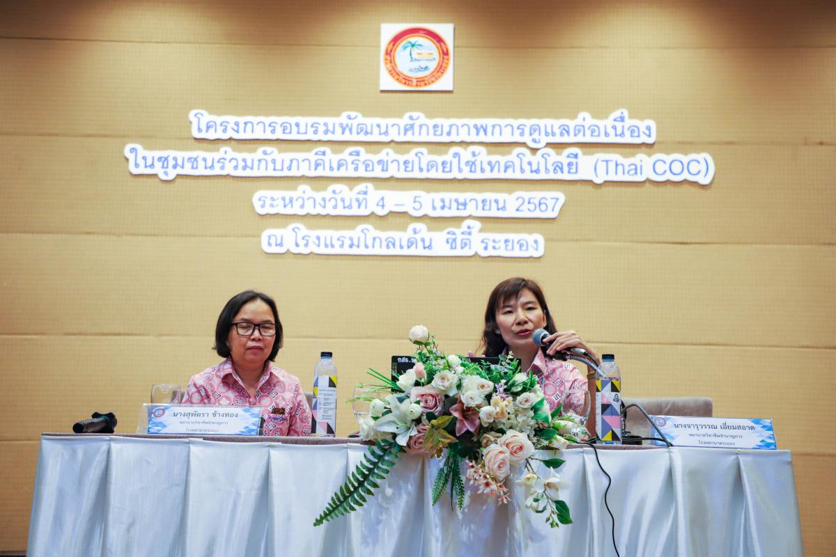 วันที่ 5 เมษายน พ.ศ. 2567 เวลา 09.00 น. กองสาธารณสุข องค์การบริหารส่วนจังหวัดระยอง จัดโครงการอบรมพัฒนาศักยภาพการดูแลต่อเนื่องในชุมชนร่วมกับภาคีเครือข่ายโดยใช้เทคโนโลยี (Thai COC) ซึ่งได้มีการเสวนาหมู่ : นวัตกรรมการดูแลผู้สูงอายุร่วมกับภาคีเครือข่าย โดยมีนางเสาวณีย์ อุ่ยตระกูล ที่ปรึกษาด้านสาธารณสุข กองสาธารณสุข องค์การบริหารส่วนจังหวัดระยอง เป็นผู้บรรยายให้ความรู้ ร่วมกับนางจำเนียร พรประยุทธ พยาบาลวิชาชีพชำนาญการพิเศษ ศูนย์บริการสาธารณสุขเทศบาลเมืองมาบตาพุด และนางระพีภัทร์ โสตถิบำเพ็ญ พยาบาลวิชาชีพชำนาญการ โรงพยาบาลระยอง ซึ่งในช่วงบ่ายได้จัดอบรมการปฏิบัติการพัฒนาการดูแลต่อเนื่องที่บ้าน และการต่อยอดการใช้โปรแกรม Thai COC โดยมีนางจารุวรรณ เอี่ยมสอาด พยาบาลวิชาชีพชำนาญการ โรงพยาบาลระยอง และนางระพีภัทร์ โสตถิบำเพ็ญ พยาบาลวิชาชีพชำนาญการ โรงพยาบาลระยอง มาร่วมให้ความรู้ในการใช้โปรแกรมแก่ผู้เข้ารับการอบรมในครั้งนี้ด้วย