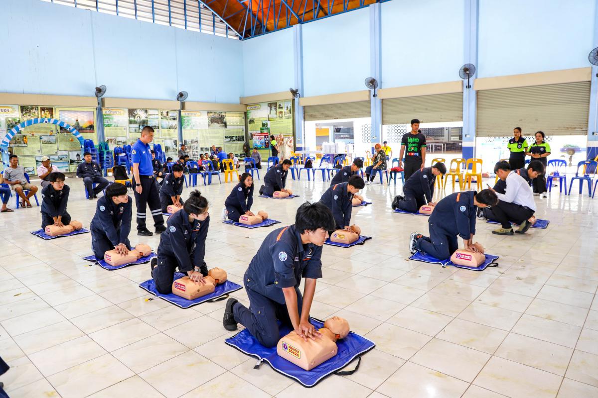 ซึ่งผู้เข้ารับการศึกอบรมจะได้รับฟังการบรรยายจากวิทยากรประจำศูนย์ยุทธการ ว่าที่น.อ.คทายุธ โพธิ์ทอง หัวหน้ากลุ่มสอบสวน กองกฎหมายและสอบสวน ศูนย์อำนวยการรักษาผลประโยชน์ของชาติทางทะเล ภาค 1 ในหัวข้อ “การป้องกันภัยคุกคามทางทะเล และการช่วยเหลือผู้ประสบภัยทางทะเล” พร้อมด้วยน.อ.ณัฐศักดิ์ วรเจริญศรี หัวหน้ากองปฏิบัติการศูนย์การแพทย์ฉุกเฉินทางทะเล และคณะวิทยากรจากโรงพยาบาลอาภากรเกียรติวงศ์ ฐานทัพเรือสัตหีบ ในการบรรยายหัวข้อ “บทบาทหน้าที่ ของศูนย์รับแจ้งเหตุและสั่งการด้านการแพทย์ทางทะเล” และหัวข้อ “การแจ้งเหตุเจ็บป่วยฉุกเฉินทางทะเล” นางสาวศุภางค์ ตั้งลิตานนท์ แพท์เวชศาสตร์ทางทะเล จากโรงพยาบาลระยอง เรื่อง “โรคและภัยสุขภาพในแรงงานประมง” พร้อมด้วยนายวิบุญญา พุทธานุ และคณะศูนย์การเรียนรู้ด้านการแพทย์ฉุกเฉิน ชมรมกู้ภัยสว่าง ในการปฏิบัติกิจกรรมกลุ่มเชิงปฏิบัติการเรื่อง “การปฐมพยาบาลฉุกเฉินและการกู้ชีพขั้นพื้นฐาน” ได้แก่ 1. กลุ่มฝึกปฏิบัติการกู้ชีพขั้นพื้นฐานด้วยวิธีการกดหน้าอกอย่างเดียว 2. กลุ่มฝึกปฏิบัติการกู้ชีพขั้นพื้นฐานด้วยผู้ช่วยเหลือ 2 คน 3. กลุ่มฝึกปฏิบัติการกู้ชีพขั้นพื้นฐานด้วยผู้ช่วยเหลือ 3 คน 4. กลุ่มฝึกปฏิบัติการใช้เครื่อง AED 5. กลุ่มฝึกปฏิบัติการกู้ชีพขั้นพื้นฐานร่วมกับการใช้เครื่อง AED โดยวิทยากรประจำศูนย์เรียนรู้ชมรมกู้ภัยสว่าง และโรงพยาบาลอาภากรเกียรติวงศ์ฐานทัพเรือสัตหีบ พร้อมประเด็นข้อสงสัยต่างๆและประเมินผลโครงการฯ