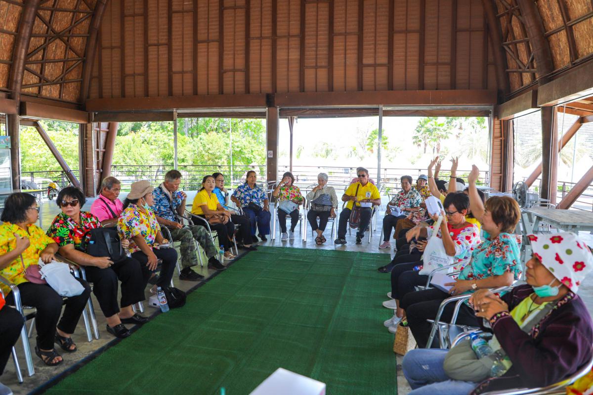 โดยผู้เข้าร่วมโครงการจะได้ร่วมกิจกรรมกลุ่มเชิงปฏิบัติการ ซึ่งแบ่งเป็นฐานการเรียนรู้ในด้านต่างๆ ประกอบด้วย ฐานที่ 1 “ดนตรีบำบัด (Music Therapy)” ฐานที่ 2 “ตามรอยพ่อ...อยู่อย่างพอเพียง” ฐานที่ 3 “เวลล์เนส คาเฟ่ (Wellness Cafe)” ฐานที่ 4 “ยาดมสมุนไพร” และฐานที่ 5 “เรียนรู้ตามรอยพ่อหลวง” ซึ่งการเข้าร่วมกิจกรรมทางสังคมจะทำให้ผู้สูงอายุได้พบปะกับผู้อื่นในวัยใกล้เคียงกัน จึงไม่รู้สึกโดดเดี่ยว ปรับตัวและยอมรับตัวเองได้ดีขึ้น สนับสนุนให้พวกเขามีความนับถือในตัวเอง ป้องกันการเกิดภาวะซึมเศร้า แนวทางการจัดกิจกรรมจึงจำเป็นต้องมีความหลากหลายและสามารถแก้ปัญหาของผู้สูงอายุได้ เช่น ช่วยดูแลสุขภาพ ทำให้จิตใจสดชื่น มีความภูมิใจในชีวิต จัดการกับสภาวะอารมณ์ได้อย่างดี เพื่อใช้ชีวิตได้อย่างปกติสุข