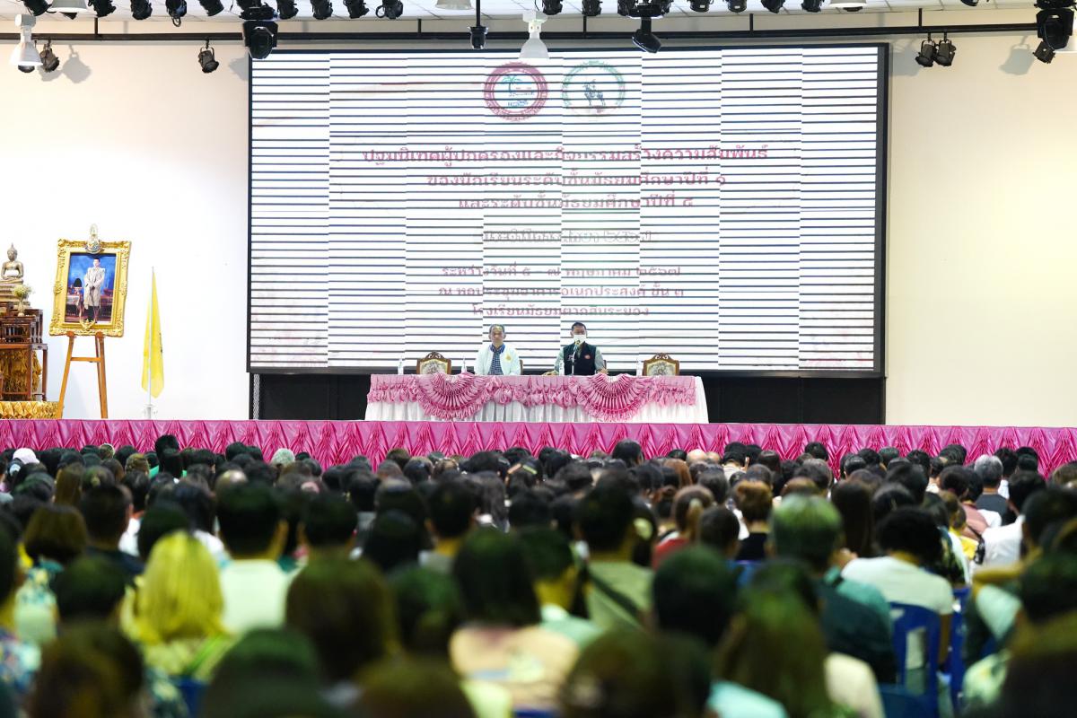 วันที่ 5 พฤษภาคม 2567 เวลา 09.00 น. นายนายปิยะ ปิตุเตชะ นายกองค์การบริหารส่วนจังหวัดระยอง พร้อมด้วย นายประสานต์ พฤกษาชาติ รองนายกองคการบริหารส่วนจังหวัดระยอง (2), นางสาววัชราภรณ์ สมพงษ์ผึ้ง รองผู้อำนวยการสถานศึกษาโรงเรียนอนุบาลนานาชาติตากสินระยอง รักษาการในตำแหน่ง ผู้อำนวยการสถานศึกษาโรงเรียนมัธยมตากสินระยอง คณะผู้บริหาร คณะครู และเจ้าหน้าที่ที่เกี่ยวข้องเข้าร่วมการปฐมนิเทศผู้ปกครองและนักเรียนระดับชั้นมัธยมศึกษาปีที่1 และมัธยมศึกษาปี4 โดยมีวัตถุประสงค์ เพื่อชี้แจงถึงนโยบายด้านการศึกษาของโรงเรียนและให้นักเรียนรู้จักการปรับตัวเข้ากับเพื่อนและสภาพแวดล้อมใหม่ๆ ในโรงเรียน ณ หอประชุมอาคารอเนกประสงค์ ชั้น 3 โรงเรียนมัธยมตากสินระยอง