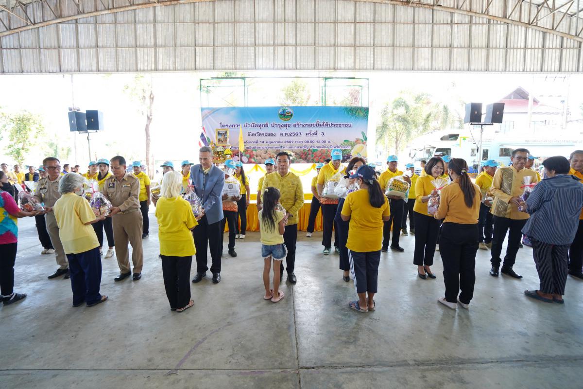 วันที่ 14 พฤษภาคม 2567 เวลา 09.30 น. องค์การบริหารส่วนจังหวัดระยอง นำโดย นายปิยะ ปิตุเตชะ นายกองค์การบริหารส่วนจังหวัดระยอง พร้อมด้วย คณะผู้บริหาร สมาชิกสภาองค์การบริหารส่วนจังหวัดระยอง หัวหน้าส่วนราชการ และเจ้าหน้าที่ที่เกี่ยวข้องเข้าร่วมโครงการ อบจ.พบประชาชน โดยบูรณาการร่วมกับ โครงการ “บำบัดทุกข์ บำรุงสุข สร้างรอยยิ้มให้ประชาชน" ณ อาคารอเนกประสงค์ องค์การบริหารส่วนตำบลนาตาขวัญ หมู่ที่ 1 ตำบลนาตาขวัญอำเภอเมืองระยอง จังหวัดระยอง โดยมี นายไตรภพ วงศ์ไตรรัตน์ ผู้ว่าราชการจังหวัดระยอง เป็นประธานในพิธี พร้อมคณะ นำหน่วยบริการเคลื่อนที่ภายใต้โครงการ “หน่วยบำบัดทุกข์ บำรุง สร้างรอยยิ้มให้กับประชาชน” ซึ่งโครงการดังกล่าวมีวัตถุประสงค์ เพื่อแก้ไขปัญหาความเดือดร้อนให้กับประชาชน และนำกิจกรรม งานบริการของส่วนราชการ และหน่วยงานต่างๆ ออกให้บริการประชาชนนอกสถานที่ ภายในงานได้มีกิจกรรมต่างๆ เช่น การมอบข้าวของเครื่องอุปโภคบริโภคผู้ยากไร้ การมอบทุนการศึกษาแก่นักเรียน การตรวจสุขภาพ อุดฟันถอนฟัน การจำหน่ายสินค้าราคาถูก กิจกรรมการแจกต้นไม้ และกิจกรรมอื่นๆอีกมากมาย โดยในช่วงบ่ายเป็นกิจกรรมการลงพื้นที่ตรวจเยี่ยมโรงพยาบาลส่งเสริมสุขภาพตำบลบ้านเขาวังม่าน โรงพยาบาลส่งเสริมสุขภาพตำบลบ้านแลง และโรงพยาบาลส่งเสริมสุขภาพตำบลนาตาขวัญ เพื่อรับฟังปัญหา พร้อมมอบนโยบายและแนวทางการแก้ไขปัญหาต่อไป