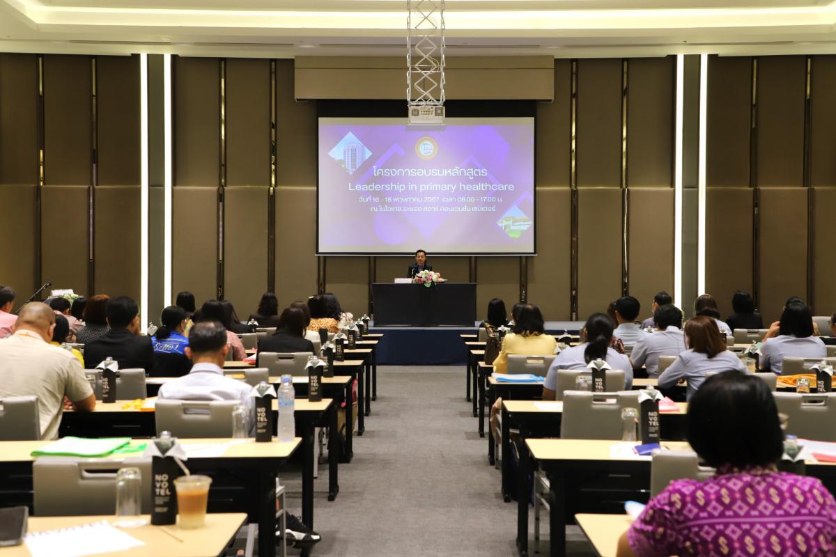โครงการอบรมหลักสูตร Leadership in primary healtcare จัดขึ้นเพื่อให้ผู้เข้าร่วมอบรบมีความรู้และทักษะเกี่ยวกับการเป็นผู้นำการเปลี่ยนแปลงในระบบสุขภาพปฐมภูมิ สามารถนำหลักการสื่อสารที่ดี นำไปปรับใช้เพื่อพัฒนาตนเองได้อย่างต่อเนื่อง พร้อมกับจะได้รับความรู้จากวิทยาด้านสาธารณสุขทั้งภาครัฐและเอกชน ในหัวข้อเรื่องทิศทางการพัฒนาระบบบริการปฐมภูมิ พรบ.ระบบสุขภาพปฐมภูมิกับการถ่ายโอน และ FCC guide Assessment และในช่วงบ่ายมีการแบ่งกลุ่มย่อย เพื่อฝึกปฏิบัติการวางแผนการจัดบริการในคลีนิกหมอครอบครัวตาม พรบ.ระบบสุขภาพปฐมภูมิ