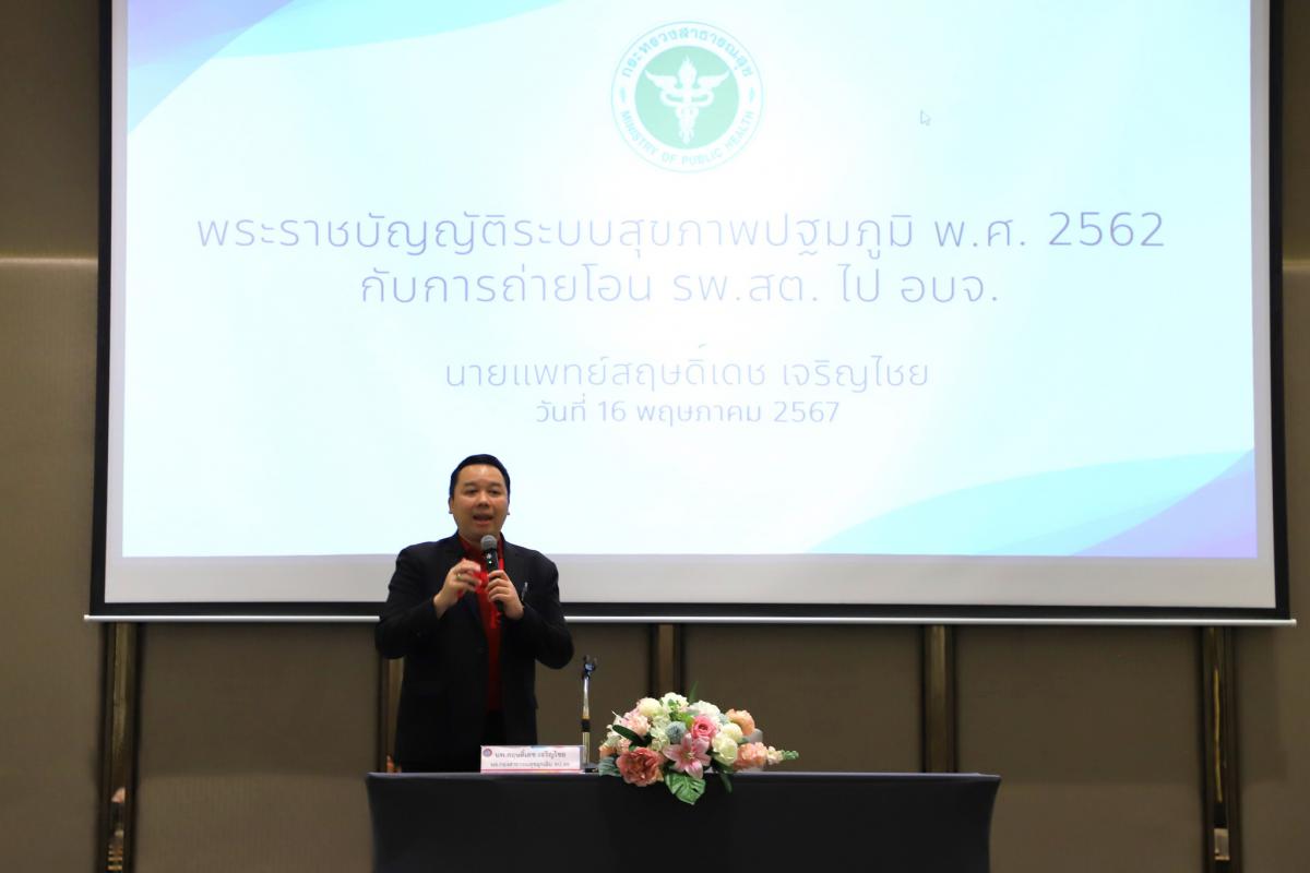 วันที่ 16 พฤษภาคม 2567 เวลา 09.00 น. นายกิตติ เกียรติ์มนตรี รองนายกองค์การบริหารส่วนจังหวัดระยอง เป็นประธานเปิด "โครงการอบรมหลักสูตร Leadership in primary healtcare" โดยมีนายสุริยะ ศิริวัฒน์ โรงพยาบาลส่งเสริมสุขภาพตำบล รักษาราชการแทน ผอ.กองสาธารณสุข เป็นผู้กล่าวถึงวัตถุประสงค์ของการจัดโครงการดังกล่าว ซึ่งมีผู้เข้าร่วมโครงการประกอบด้วย ผอ.รพ.สต.และเจ้าหน้าที่ของ รพ.สต.ในสังกัดองค์การบริหารส่วนจังหวัดระยอง ทั้ง 85 แห่ง จำนวน 120 คน ณ โรงแรมโนโวเทล ระยอง สตาร์ คอนเวนชั่น เซ็นเตอร์