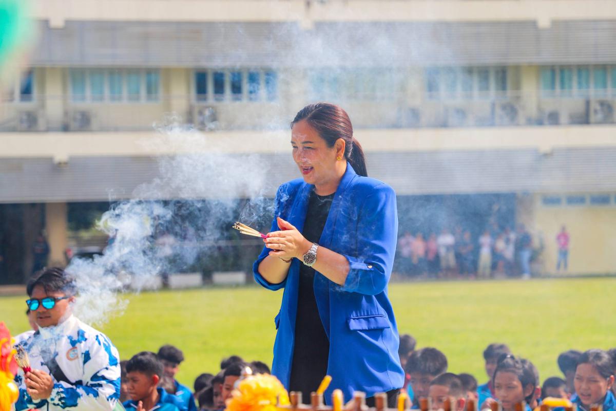 วันที่ 19 มิถุนายน 2567 เวลา 09.00 น. องค์การบริหารส่วนจังหวัดระยอง ได้ส่งนักเรียนของสถานศึกษาในสังกัด เข้าร่วมการแข่งขันกีฬานักเรียนองค์กรปกครองส่วนท้องถิ่น รอบคัดเลือกระดับภาคตะวันออก ครั้งที่ 38 “วังน้ำเย็นเกมส์” โดยได้จัดส่งนักเรียนของสถานศึกษาในสังกัด จำนวน 293 คน เข้าร่วมการแข่งขันกีฬาจำนวน 10 ชนิด ซึ่งได้รับเกียรติจาก นายกิตติ เกียรติ์มนตรี รองนายกองค์การบริหารส่วนจังหวัดระยอง (1) เป็นประธานอำนวยพรแก่คณะนักกีฬา ผู้ฝึกสอน และผู้ควบคุมทีม พร้อมด้วย นายสุรินทร์ แสงทอง ปลัดองค์การบริหารส่วนจังหวัดระยอง, นางสาววัชราภรณ์ สมพงษ์ผึ้ง รองผู้อำนวยการสถานศึกษา โรงเรียนอนุบาลนานาชาติตากสินระยอง รักษาการในตำแหน่ง ผู้อำนวยการสถานศึกษา โรงเรียนมัธยมตากสินระยอง และผู้ที่เกี่ยวข้องร่วมอำนวยพรเพื่อเป็นขวัญและกำลังใจ คณะนักกีฬา ผู้ฝึกสอน และผู้ควบคุมทีม ณ โรงเรียนมัธยมตากสินระยอง