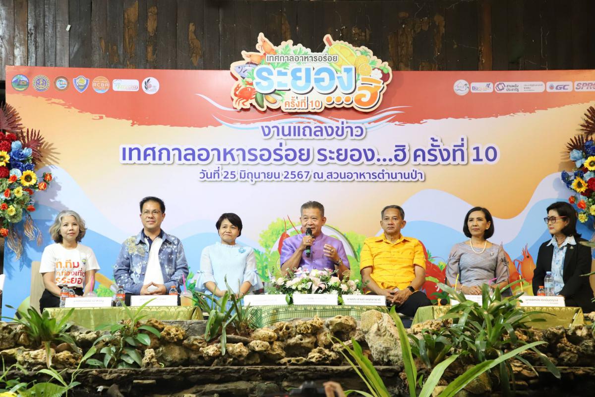 วันที่ 25 มิถุนายน 2567 เวลา 17.00 น. นายประสานต์ พฤกษาชาติ รองนายกองค์การบริหารส่วนจังหวัดระยอง (2) เข้าร่วมงานแถลงข่าวการจัดงาน “เทศกาลอาหารอร่อย ระยอง…ฮิ ครั้งที่ 10” พร้อมด้วย นางทรรศนีย์ เบ้าหิรัญ เลขาธิการสภาอุตสาหกรรมจังหวัดระยอง นายพิธพร สมะลาภา ประธานหอการค้าจังหวัดระยอง นางจิรนันท์ บัวสำลี พาณิชย์จังหวัดระยอง นางปิยะดา ควรหา นายกสมาคมผู้ประกอบการอาหารและเครื่องดื่มจังหวัดระยอง นางพิศมัย ศุภนันตฤกษ์ นายกสมาคมโรงแรมจังหวัดระยอง โดยมีนายกัฬชัย เทพวรชัย รองผู้ว่าราชการจังหวัดระยอง เป็นประธานงานแถลงข่าว ณ ตำนานป่ารีสอร์ท อำเภอเมืองระยอง จังหวัดระยอง