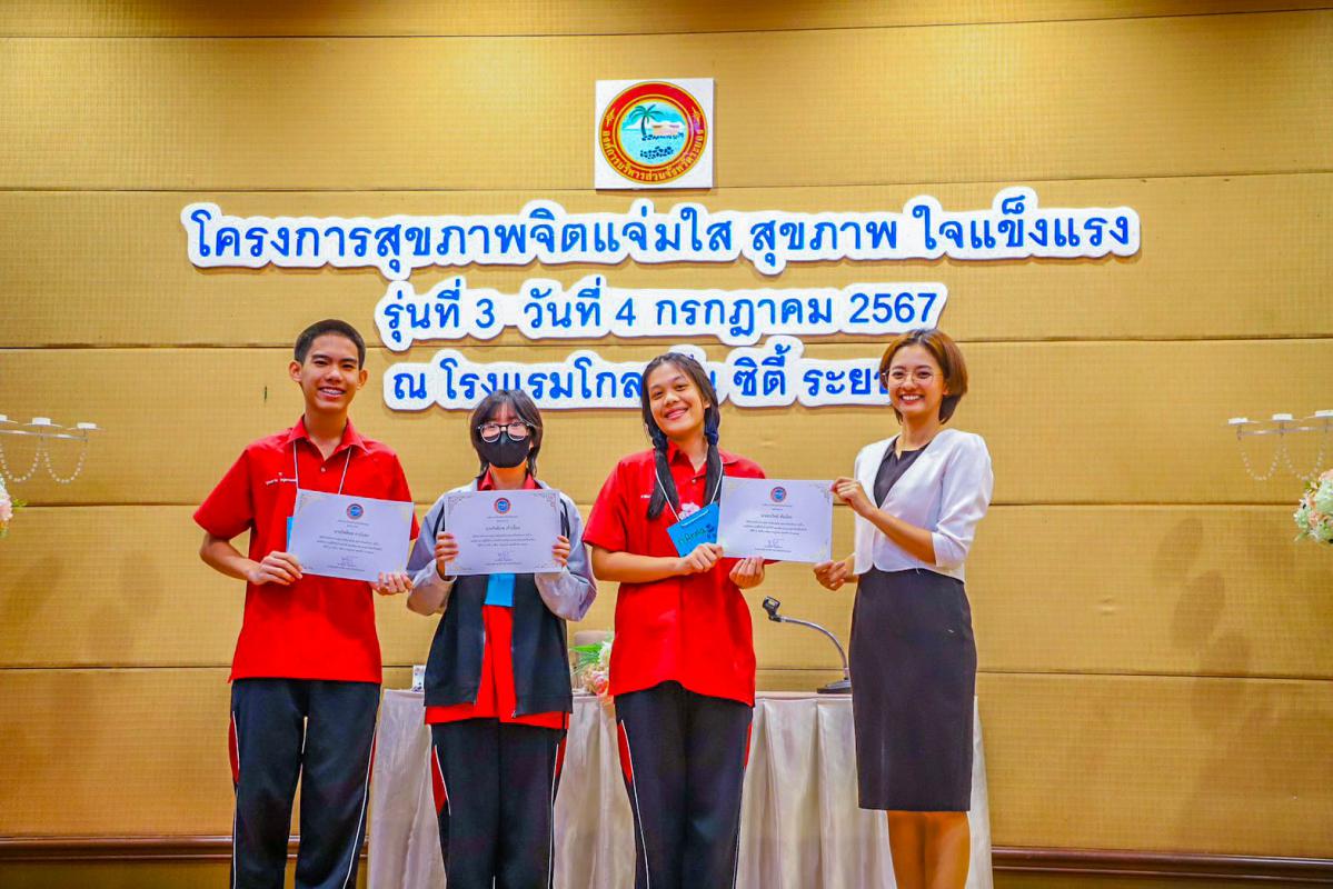 วันที่ 4 กรกฎาคม 2567 เวลา 09.00 น. กองสาธารณสุข อบจ.ระยอง จัดโครงการสุขภาพจิตแจ่มใส สุขภาพใจแข็งแรง โดยมีจุดประสงค์เพื่อให้นักเรียน ครู และบุคลากรในสังกัดองค์การบริหารส่วนจังหวัดระยองเข้าร่วมโครงการจำนวน 300 คน ให้ได้มีความรู้ ความเข้าใจเรื่องสุขภาพจิตและภาวะซึมเศร้า สามารถแก้ไขปัญหาต่างๆได้อย่างมีประสิทธิภาพ และดำรงชีวิตอยู่ในสังคมได้อย่างปกติสุข รวมถึงเพื่อครูและบุคลากรทางการศึกษาในสังกัด ได้มีทักษะที่จำเป็นในการเตรียมพร้อมรับมือในการดูแลนักเรียนกลุ่มที่มีภาวะซึมเศร้าได้ทันท่วงที โดยมีกำหนดการจัดโครงการในรุ่นที่ 3 -4 ในวันที่ 4 – 5 กรกฎาคม 2567 ซึ่งได้รับเกียรติจากนางสาวกรผกา พัฒนกำพล และคณะ ให้เกียรติมาเป็นวิทยากรในโครงการดังกล่าว ณ โรงแรมโกลเด้น ซิตี้ ระยอง อ.เมือง จ.ระยอง