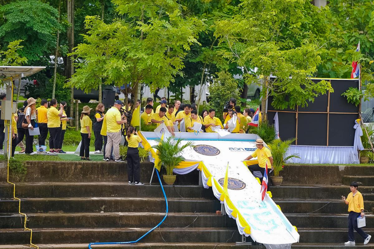 ซึ่งโครงการครั้งนี้จัดขึ้นเพื่อเฉลิมพระเกียรติ และถวายเป็นพระราชกุศลแด่พระบาทสมเด็จพระเจ้าอยู่หัว เนื่องในโอกาสพระราชพิธีมหามงคลเฉลิมพระชนมพรรษา 6 รอบ 28 กรกฎาคม 2567 เพื่อเป็นการพัฒนาฟื้นฟูแหล่ง น้ำด้วยการกำจัดผักตบชวาโดยใช้โดรนบินพ่นสารผสมที่มีประสิทธิภาพปลอดภัย และเป็นมิตรกับสิ่งแวดล้อม ร่วมกับการใช้ทุ่นยางพาราเพื่อควบคุมการแพร่กระจายของผักตบชวาเพิ่มประสิทธิภาพการระบายน้ำ ซึ่งเป็นนวัตกรรมที่ช่วยลดผลกระทบสิ่งแวดล้อมและใช้ประโยชน์จากยางพาราแปรรูป ช่วยทำให้คลองสะอาด เสริมสร้างทัศนียภาพสวยงาม และชีวิตที่ดีขึ้นของประชาชนในพื้นที่โดยรอบ สามารถแก้ไขปัญหาการแพร่ระบาดของผักตบชวาได้อย่างมีประสิทธิภาพ ปลอดภัยต่อสิ่งแวดล้อม เพื่อเป็นการดูแล และฟื้นฟูแหล่งน้ำจืดในพื้นที่จังหวัดระยองให้มีความอุดมสมบูรณ์อย่างยั่งยืนต่อไป