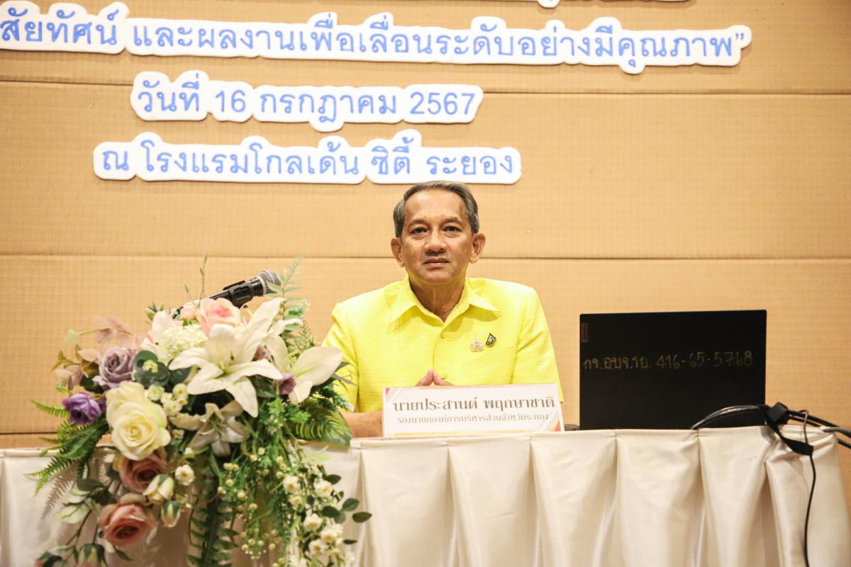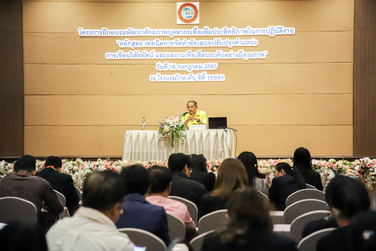 วันที่ 16 กรกฎาคม 2567 เวลา 09.00 น. นายประสานต์ พฤกษาชาติ รองนายกองค์การบริหารส่วนจังหวัดระยอง (2) เป็นประธานเปิดโครงการฝึกอบรมพัฒนาศักยภาพบุคลากรเพื่อเพิ่มประสิทธิภาพในการปฏิบัติงาน "หลักสูตร เทคนิคการจัดทำข้อเสนอปรับปรุงตำแหน่ง การเขียนวิสัยทัศน์ และผลงานเพื่อเลื่อนระดับอย่างมีคุณภาพ" พร้อมด้วย นายสุรินทร์ แสงทอง ปลัดองค์การบริหารส่วนจังหวัดระยอง, นายสมเกียรติ ยุพาพิน รองปลัดองค์การบริหารส่วนจังหวัดระยอง ผู้อำนวยการกอง ข้าราชการ และเจ้าหน้าที่ที่เกี่ยวข้องเข้าร่วมโครงการโดยพร้อมเพียงกัน ซึ่งโครงการดังกล่าวมีวัตถุประสงค์เพื่อให้บุคลากรได้รับความรู้ ความเข้าใจ ในกระบวนการปรับปรุงตำแหน่ง เทคนิคการเขียนวิสัยทัศน์ และการเสนอผลงาน เพื่อเลื่อนระดับอย่างมีคุณภาพ โดยมีผู้เข้ารับการฝึกอบรม จำนวนทั้งสิ้น 160 คน และได้รับเกียรติจากวิทยากร อาจารย์ชนินทร์ ราชมณี ผู้ทรงคุณวุฒิ คณะกรรมการกลางข้าราชการส่วนท้องถิ่น กรมส่งเสริมการปกครองท้องถิ่น กระทรวงมหาดไทย มาบรรยายให้ความรู้ ณ ห้องสร้อยเพชร โรงแรมโกลเด้น ซิตี้ ระยอง