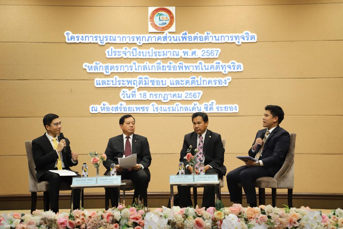 วันที่ 18 กรกฎาคม 2567 เวลา 08.30 น. นายปิยะ ปิตุเตชะ นายกองค์การบริหารส่วนจังหวัดระยอง เป็นประธานเปิดโครงการบูรณาการทุกภาคส่วนเพื่อต่อต้านการทุจริต ประจำปีงบประมาณ พ.ศ. 2567 "หลักสูตรการไกล่เกลี่ยข้อพิพาทในคดีทุจริตและประพฤติมิชอบ และคดีปกครอง" พร้อมด้วยคณะผู้บริหาร หัวหน้าส่วนราชการ และเจ้าหน้าที่ที่เกี่ยวข้องเข้าร่วมโครงการฯอย่างพร้อมเพรียงกัน ณ โรงแรมโกลเด้น ซิตี้ ระยอง