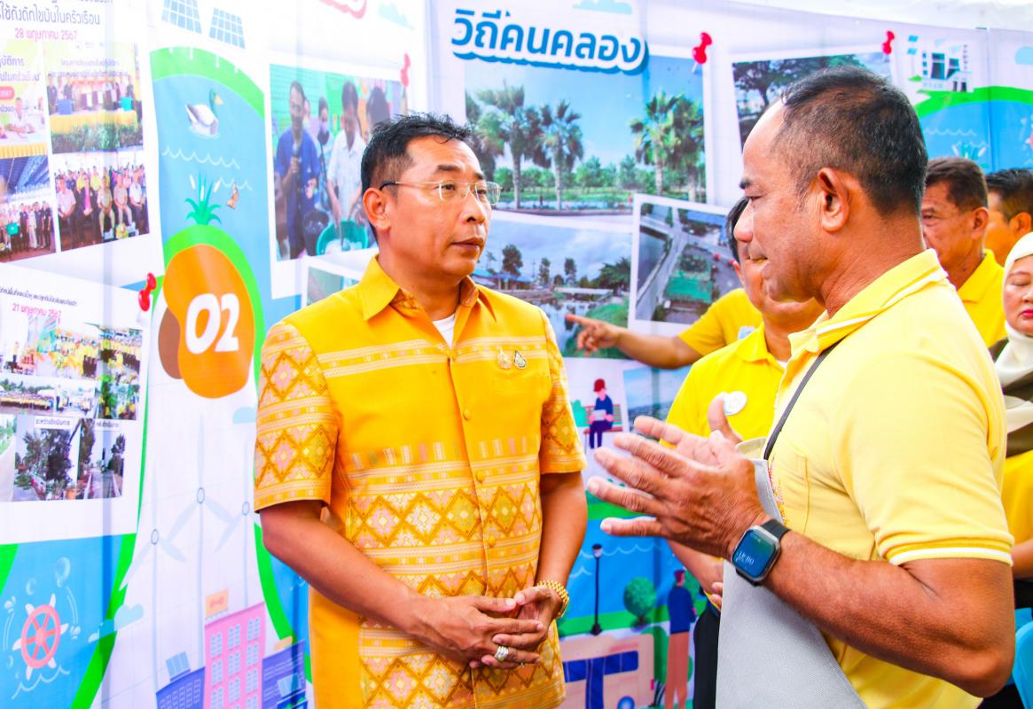 ซึ่งภายในงานมีนิทรรศการที่แสดงถึงวิถีชีวิตของชุมชน การประสานความร่วมมือ และการจัดการน้ำก่อนปล่อยสู่คลองด้วยถังตักไขมันในหัวข้อ คนระยองรวมใจภักดิ์ รักคลองน้ำหู,วิถีคนคลอง คนคลองน้ำหู,คลองประสานความร่วมมือ,คลองร่วมใจ 3 อปท. 8 ชุมชน, คลองแห่งความสุข, ถังดักไขมันในครัวเรือน และมีการแสดงวิสัยทัศน์จากผู้แทนภาคประชาชน ภาครัฐ และภาคเอกชน ประกอบด้วยนายศักดา จิตลดล ประธานกลุ่มผู้ใช้น้ำอนุรักษ์คลองน้ำหู ขึ้นกล่าวในหัวข้อ “วิถีคนคลองกับมุมมองในอนาคต” นายอำนวย ไตรลักษณ์ รองนายกเทศมนตรีเมืองมาบตาพุด ขึ้นกล่าวในหัวข้อ “คลองประสานความร่วมมือ” นายประสานต์ พฤกษาชาติ รองนายกองค์การบริหารส่วนจังหวัดระยอง ขึ้นกล่าวในหัวข้อ “คลองแห่งความหวังกับมุมมองภาครัฐ” และนายสำราญ ทิพย์บรรพต ผู้แทนสมาคมเพื่อนชุมชน ขึ้นกล่าวในหัวข้อ “คลองแห่งความหวังกับมุมมองของภาคเอกชน” เพื่อเป็นความร่วมมือทั้งภาคประชาชน ภาครัฐ และภาคเอกชนในการแสดงทัศนวิสัยเพื่อร่วมกันอนุรักษ์ฟื้นฟูคลองน้ำหูให้ใสสะอาด และมีทรัพยากรทางธรรมชาติที่อุดมสมบูรณ์อยู่คู่ชุมชนต่อไป