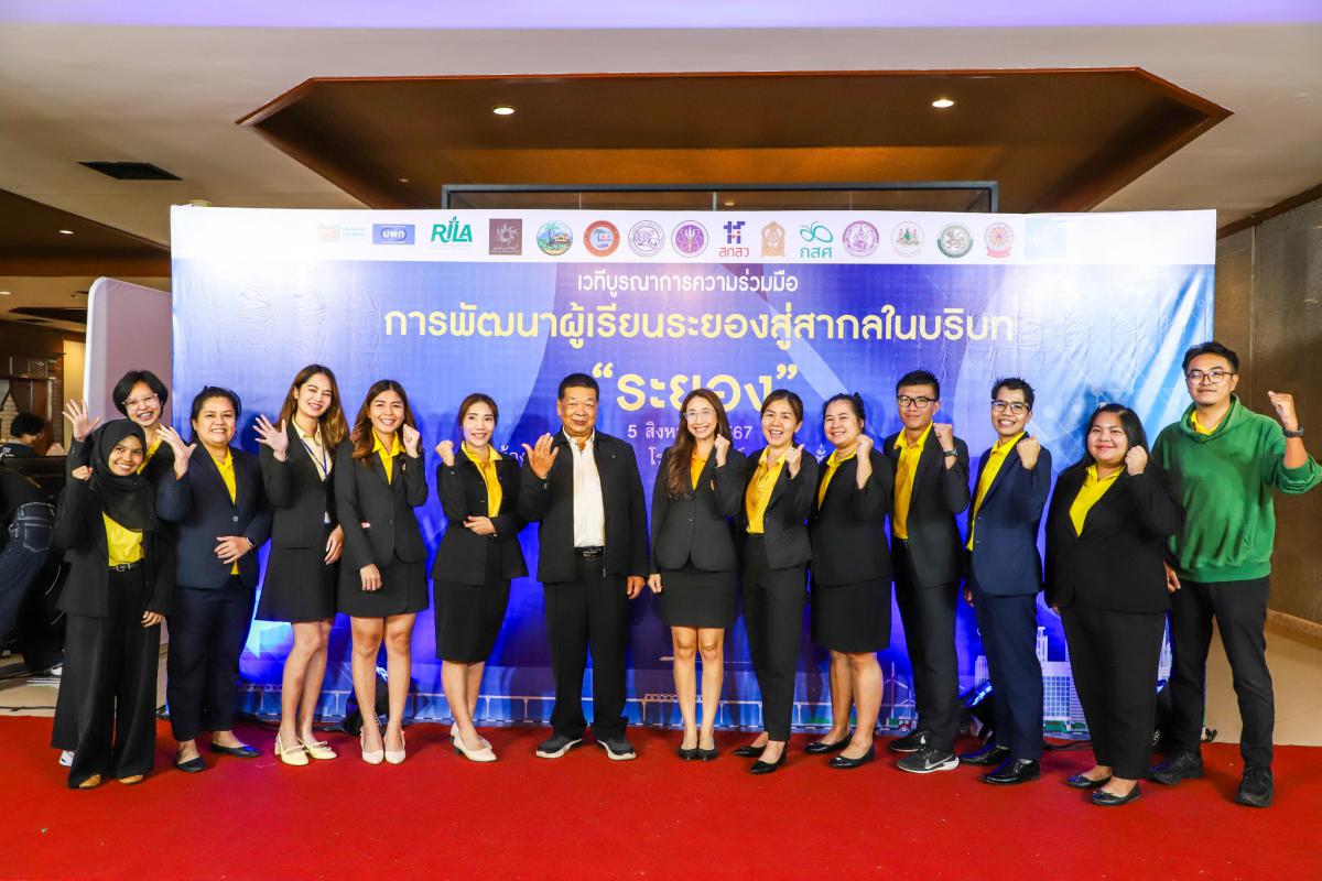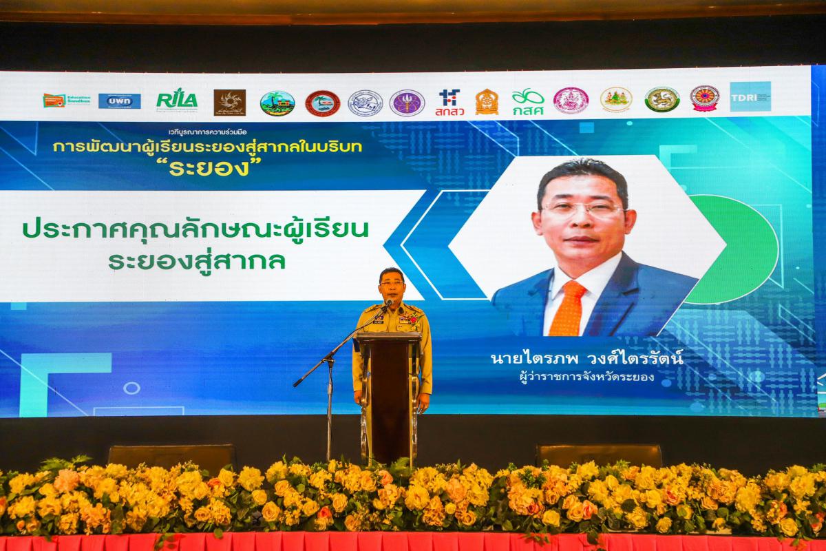 วันที่ 5 สิงหาคม 2567 เวลา 13.30 น. ณ โรงแรมสตาร์ คอนเวนชั่น ระยอง นายประสานต์ พฤกษาชาติ รองนายกองค์การบริหารส่วนจังหวัดระยอง (2) ลงนามบันทึกข้อตกลงคุณลักษณะผู้เรียนระยองสู่สากลตามบริบทจังหวัดระยอง โดยมีนายไตรภพ วงศ์ไตรรัตน์ ผู้ว่าราชการจังหวัดระยอง เป็นประธานในพิธีฯ พร้อมด้วย หน่วยงานที่เกี่ยวข้องจำนวน 16 หน่วยงานร่วมลงนามบันทึกข้อตกลงโดยพร้อมเพรียงกัน ซึ่งภายในงานได้มีการบรรยายหัวข้อ “การจัดการศึกษาเชิงพื้นที่ทางออกการศึกษาไทย” “การจัดการศึกษาในบริบทระยองสู่การขับเคลื่อนเศรษฐกิจและสังคม” และในหัวข้อ “การเสวนาเราจะร่วมสร้างคุณลักษณะผู้เรียนระยองสู่สากลได้อย่างไร” โดยมีผู้ร่วมบรรยายพิเศษและร่วมเวทีเสวนา ประกอบด้วย นางสาวสลารีวรรณ ทัพทวี รองผู้ว่าราชการจังหวัดระยอง, ดร.สมเกียรติ ตั้งกิจวานิชย์ ประธานสถาบันวิจัยเพื่อพัฒนาประเทศ, ดร.สาธิต ปิตุเตชะ ประธานที่ปรึกษาคณะกรรมการสถาบันการเรียนรู้ของคนทุกช่วงวัยจังหวัดระยอง, รศ.ประภาภัทร นิยม อธิการบดีสถาบันอาศรมศิลป์, ดร.ไกรยส ภัทราวาท ผู้จัดการกองทุนเพื่อความเสมอภาคทางการศึกษา, รศ.ดร.ปัทมาวดี โพชนุกูล ผู้อำนวยการสำนักงานคณะกรรมการส่งเสริมวิทยาศาสตร์วิจัยและนวัตกรรม ดร.พิทักษ์ โสตถยาคม ผู้อำนวยการสำนักงานบริหารพื้นที่นวัตกรรมการศึกษา, นายสมศักดิ์ พะเนียงทอง ผู้อำนวยการสถาบันการเรียนรู้ของคนทุกช่วงวัยจังหวัดระยอง และนายปรัชญา สมะลาภา รองประธานกรรมการหอการค้าไทย ณ ห้องสุนทรภู่ โรงแรมสตาร์ คอนเวนชั่น จังหวัดระยอง