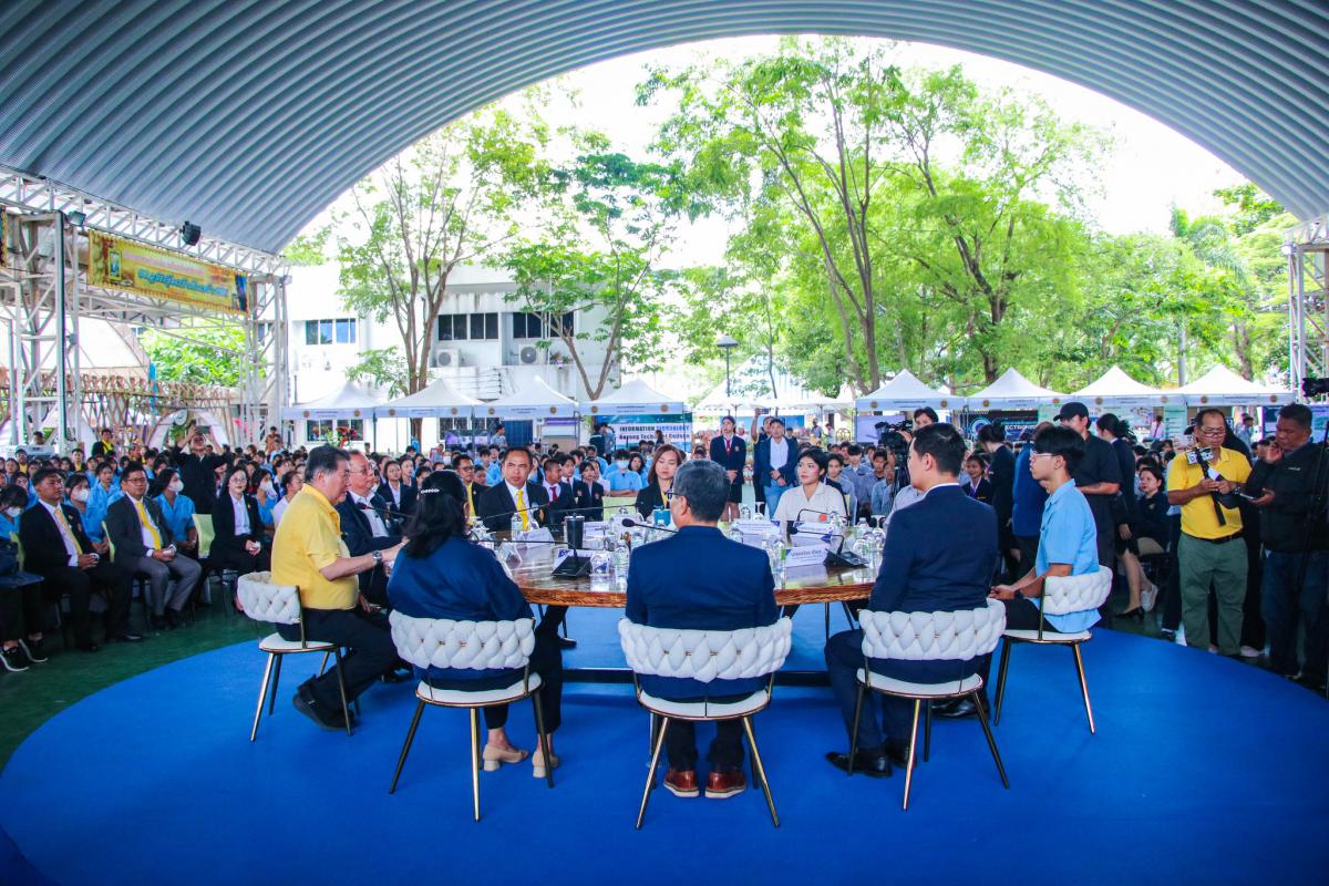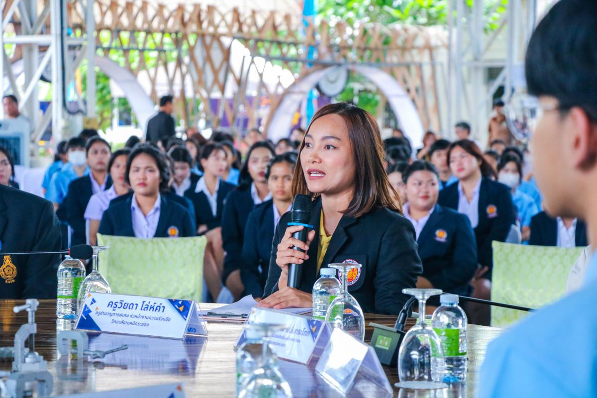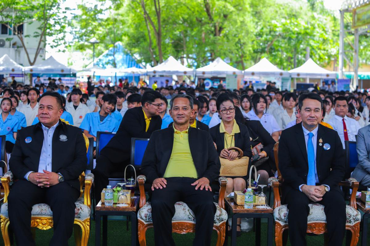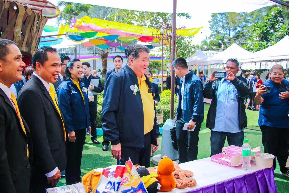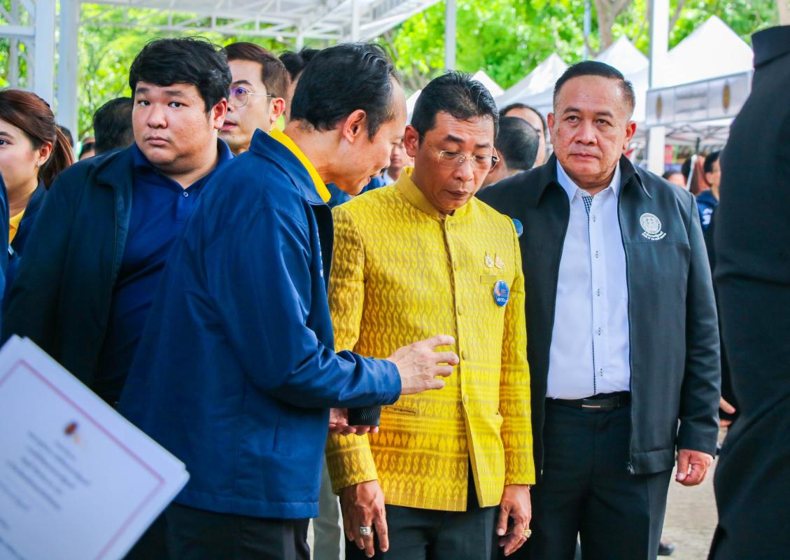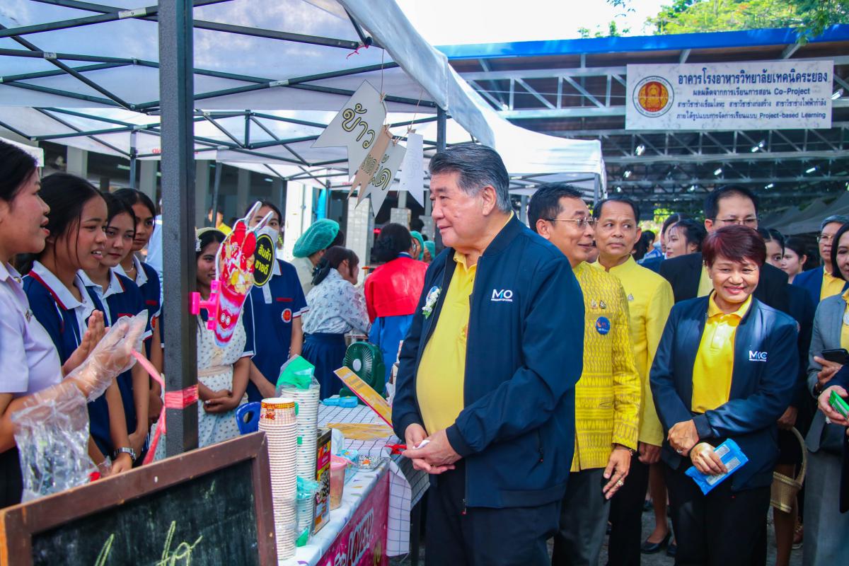 วันที่ 7 สิงหาคม 2567 เวลา 09.30 น. นายประสานต์ พฤกษาชาติ รองนายกองค์การบริหารส่วนจังหวัดระยอง (2) ร่วมให้การต้อนรับ นายภูมิธรรม เวชยชัย รองนายกรัฐมนตรี และรัฐมนตรีว่าการกระทรวงพาณิชย์ ลงพื้นตรวจเยี่ยมผลการดำเนินงานการพัฒนาทุนมนุษย์ตามแนวคิด EEC model โดยมี นายไตรภพ วงศ์ไตรรัตน์ ผู้ว่าราชการจังหวัดระยอง เป็นผู้กล่าวต้อนรับ และพาเยี่ยมชมการดำเนินการจัดตลาดนัดธุรกิจ RYTC Market ของแต่ละแผนกวิชา ภายใต้ศูนย์บ่มเพาะผู้ประกอบการ ซึ่งเป็นการหารายได้ระหว่างเรียนและก้าวเข้าสู่การเป็นเถ้าแก่น้อย เพื่อไปสู่การประกอบอาชีพในอนาคต และเยี่ยมชมบูธแสดงผลงานของนักเรียน นักศึกษาวิทยาลัยเทคนิคระยอง รูปแบบ Innovation & Technology ในแต่ละแผนกวิชา และบูธแสดงผลงานของนักเรียน นักศึกษาของวิทยาลัยสังกัดอาชีวศึกษาจังหวัดระยองทั้ง 12 แห่ง ณ วิทยาลัยเทคนิคระยอง จังหวัดระยอง