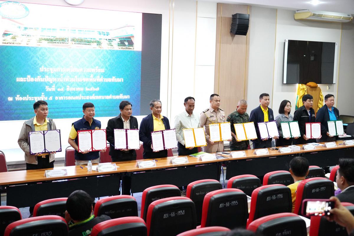 การประชุมและร่วมบันทึกข้อตกลงความร่วมมือเพื่อบูรณาการในการดำเนินการเตรียมความพร้อมและป้องกันปัญหาน้ำท่วมในพื้นที่เทศบาลตำบลทับมา