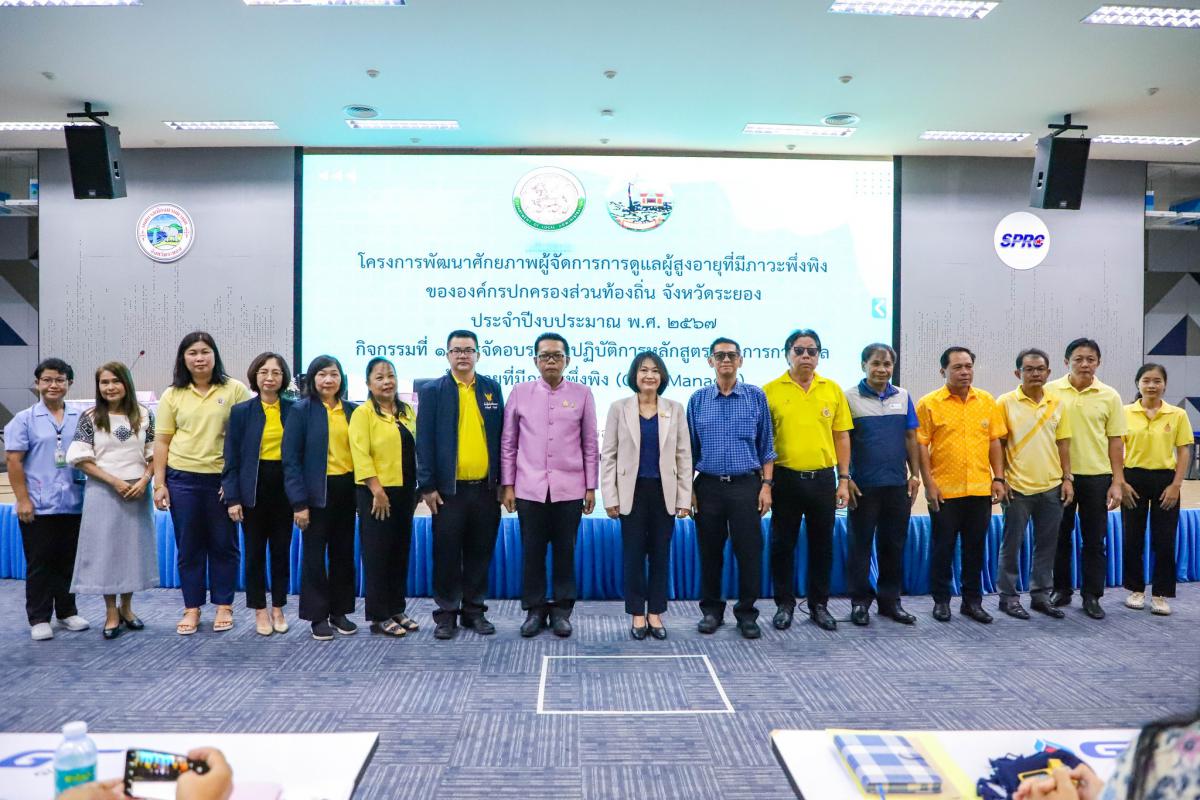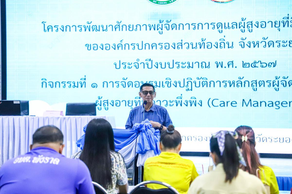 พิธีเปิดโครงการพัฒนาศักยภาพผู้จัดการการดูแลผู้สูงอายุที่มีภาวะพึ่งพิง ขององค์กรปกครองส่วนท้องถิ่น จังหวัดระยอง ประจำปีงบประมาณ พ.ศ. 2567 การจัดอบรมเชิงปฏิบัติการหลักสูตรผู้จัดการการดูแลผู้สูงอายุที่มีภาวะพึ่งพิง (Care Manager)