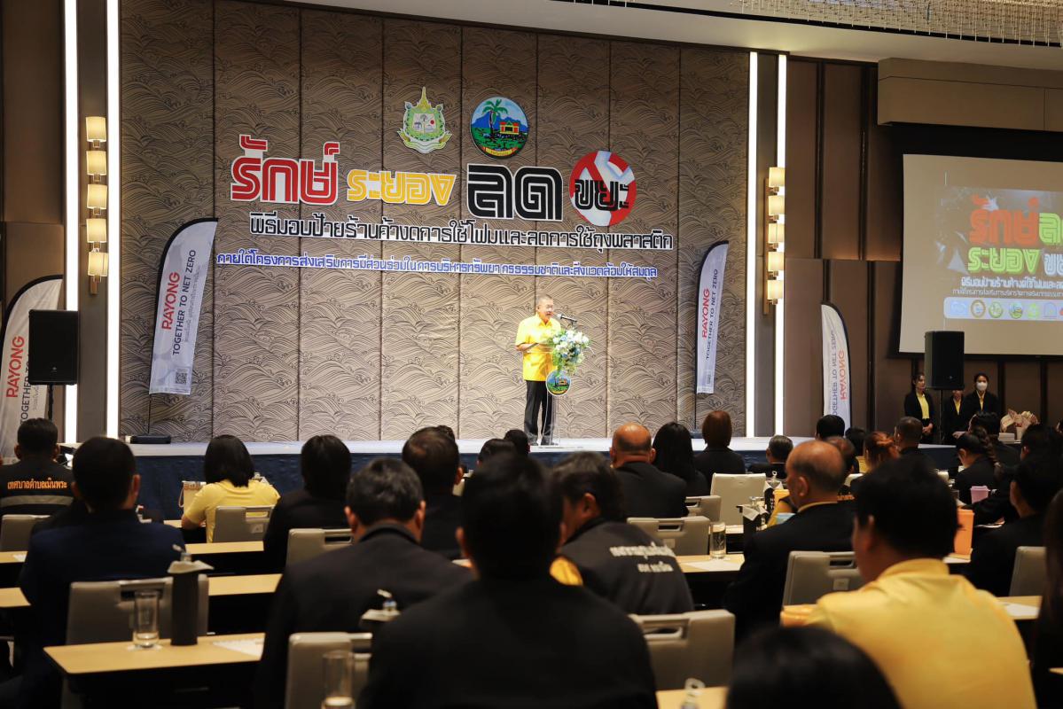 พิธีมอบป้ายร้านค้างดการใช้โฟมและลดการใช้พลาสติก และกิจกรรมเสวนาการจัดการสิ่งแวดล้อมจังหวัดระยองอย่างยั่งยืน ภายใต้แนวคิด ชีวิตวิถีใหม่ ใส่ใจสิ่งแวดล้อม "รักระยอง ลดขยะ : งดโฟม ลดถุงพลาสติก กู้วิกฤตโลกเดือด"