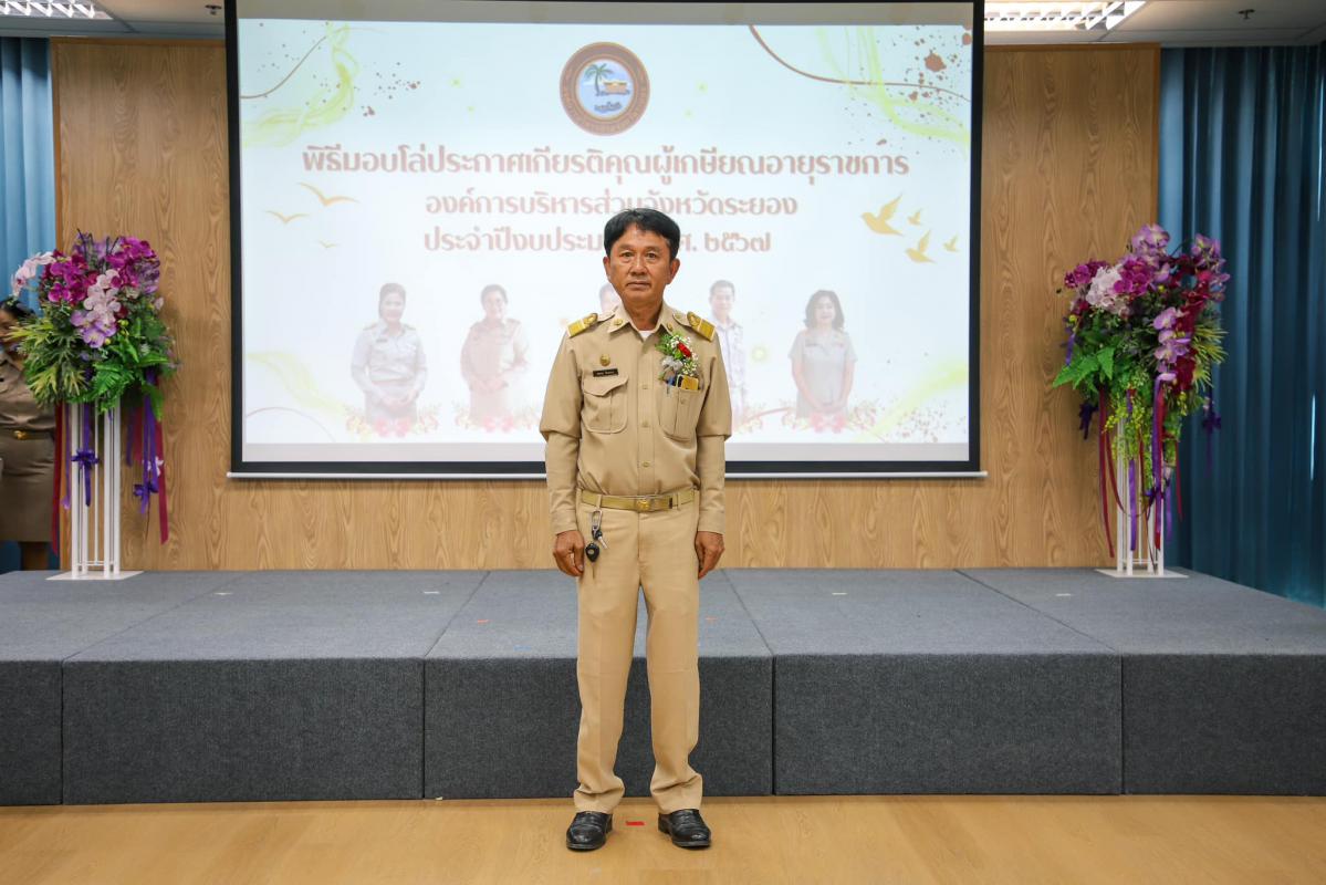 โดยในปีนี้ องค์การบริหารส่วนจังหวัดระยอง มีข้าราชการที่เกษียณอายุราชการ จำนวน 5 ท่าน จึงได้จัดพิธีมอบโล่ประกาศเกียรติคุณขึ้น เพื่อแสดงความขอบคุณแก่ผู้เกษียณอายุราชการทุกท่าน ที่ได้ทุ่มเทปฏิบัติหน้าที่ราชการด้วยความอดทน อุทิศตนและเสียสละ และยังเป็นการยกย่องเชิดชูเกียรติ สร้างขวัญและกำลังใจ ให้กับคนรุ่นหลังได้ละลึกถึงผู้เกษียณอายุราชการ ที่เป็นแบบอย่างในการปฏิบัติราชการที่ดีให้กับข้าราชการและลูกจ้างประจำขององค์การบริหารส่วนจังหวัดระยองต่อไป