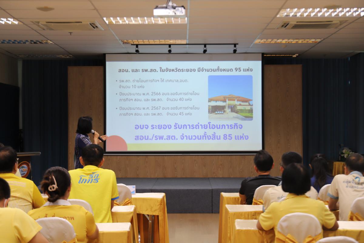 วันที่ 11 กันยายน 2567 เวลา 09.00 น. นายมนตรี ชนะชัยวิบูลวัฒน์ ที่ปรึกษานายกองค์การบริหารส่วนจังหวัดระยอง เป็นประธาน พร้อมด้วยนายสุริยะ ศิริวัฒน์ โรงพยาบาลส่งเสริมสุขภาพตำบล รักษาราชการแทน ผู้อำนวยการกองสาธารณสุข, นางสาวเสาวนีย์ อุ่ยตระกูล ผู้เชี่ยวชาญด้านสาธารณสุข องค์การบริหารส่วนจังหวัดระยองและเจ้าหน้าที่ที่เกี่ยวข้อง ร่วมให้การต้อนรับคณะศึกษาดูงานจากองค์การบริหารส่วนจังหวัดปราจีนบุรี ซึ่งนำคณะโดย นายยุทธชัย แสวงสุทธิ รักษาการแทนผู้อำนวยการกองสาธารณสุข องค์การบริหารส่วนจังหวัดปราจีนบุรีและนางประอรดิษฐ์ ธำรงราชภัฏ กิตติวิทิตคุณ ผู้อำนวยการกองการเจ้าหน้าที่ องค์การบริหารส่วนจังหวัดปราจีนบุรี พร้อมคณะจำนวน 175 คน โดยมาศึกษาดูงานเพื่อพัฒนาศักยภาพการบริหารจัดการด้านสาธารณสุข สถานีอนามัยเฉลิมพระเกียรติ 60 พรรษา นวมินทราชินีและโรงพยาบาลส่งเสริมสุขภาพตำบล สังกัดองค์การบริหารส่วนจังหวัดปราจีนบุรี ณ ห้องประชุม 1 ชั้น 3 อบจ.ระยอง