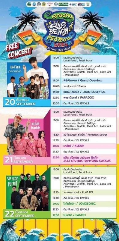 วันที่ 18 กันยายน 2567 เวลา 18.00 น. นายประสานต์ พฤกษาชาติ รองนายกองค์การบริหารส่วนจังหวัดระยอง เข้าร่วมงานแถลงข่าวการจัดงานมหกรรม ดนตรี ที่ชายหาดระยอง “Rayong long beach festival 2024 @Laemmaephim” พร้อมด้วยนายมนตรี ชนะชัยวิบูลวัฒน์ ที่ปรึกษานายกองค์การบริหารส่วนจังหวัดระยอง นายสมบัติ มุมทอง หัวหน้าสำนักปลัดองค์การบริหารส่วนจังหวัด และเจ้าหน้าที่ที่เกี่ยวข้อง ณ โรงแรม Cruises The Pool Access อำเภอแกลง จังหวัดระยอง โดยงานมหกรรม ดนตรี ที่ชายหาดระยอง “Rayong long beach festival 2024 @Laemmaephim” จะจัดขึ้นในวันที่ 20 - 22 กันยายน 2567 ภายในงานพบกับร้านอาหารมากมาย พร้อมกับรับชมคอนเสิร์ตจากศิลปินชื่อดังจากวง Lomosonic, KLEAR, jspkk, Paradox, แหลม สมพล และ POTATO ณ บริเวณชายหาดแหลมแม่พิมพ์ อำเภอแกลง จังหวัดระยอง