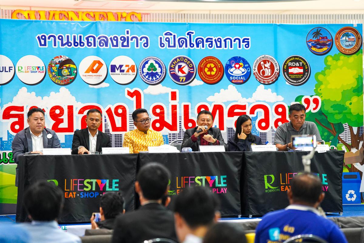 วันที่ 26 กันยายน 2567 เวลา 13.30 น. นายมนตรี ชนะชัยวิบูลวัฒน์ ที่ปรึกษานายกองค์การบริหารส่วนจังหวัดระยอง พร้อมด้วย นายสุริยะ ศิริวัฒน์ โรงพยาบาลส่งเสริมสุขภาพตำบล รักษาราชการแทน ผู้อำนวยการกองสาธารณสุข, นายณัฐศักย์ ดีศรี ท้องถิ่นจังหวัดระยอง, นางยุวพรรณ ทับแก้ว ปลัดอำเภอบ้านฉาง, ดร.อบรม อรัญพฤกษ์ ผู้เชี่ยวชาญด้านสิ่งแวดล้อม และพัฒนาเมืองน่าอยู่, ดร.กฤษณ์ พงษ์เทพิน ผู้ช่วยผูอำนวยการฝ่ายชุมชนสัมพันธ์ กลุ่มบริษัทกัลฟ์ เอ็มทีพี แอลเอ็น จีเทอร์มินอล จำกัด (GMTP), นายภูวิศธรณ์ เลิศวีระศิริกุล ผู้จัดการทั่วไปฝ่ายบริหาร ศูนย์การค้าโรบินสันไลฟ์สไตล์ บ้านฉาง และผู้ที่เกี่ยวข้องเข้าร่วมงานแถลงข่าวเปิดตัวโครงการ “ระยองไม่เทรวม” เปลี่ยนขยะเป็นประโยชน์ สิ่งแวดล้อมเมืองระยองยั่งยืน ซึ่งจัดขึ้นโดยกลุ่มภาคประชาสังคมด้านสิ่งแวดล้อมในจังหวัดระยอง ได้แก่ สื่อมวลชน เครือข่ายนักวิชาการ เกษตรกรรุ่นใหม่ Yong Smart Farmer และภาคอุตสาหกรรมเอกชน โดยมีวัตถุประสงค์ เพื่อเป็นหน่วยปฏิบัติการความร่วมมือและปฏิบัติการทางสังคม โดยการนำองค์ความรู้จากนักวิชาการและองค์กรผู้เชี่ยวชาญด้านนวัตกรรมฐานชีวภาพและนวัตกรรมจุลินทรีย์ที่มีประสิทธิภาพ มาใช้จัดการกับขยะเปียก เศษอาหาร ขยะอินทรีย์ ในเขตพื้นที่จังหวัดระยอง ส่งเสริมการสร้างระบบการจัดการขยะต้นแบบเป็นศูนย์กลางองค์ความรู้และการปฏิบัติการแปรรูปขยะจริง ซึ่งเริ่มต้นจากนำขยะเศษอาหาร จากโรงแรม ห้างสรรพสินค้า ร้านอาหาร โรงเรียน วัดและชุมชน เข้าสู่ศูนย์การกำจัดด้วย "นวัตกรรมจุลินทรีย์ที่มีประสิทธิภาพ" และช่วยเปลี่ยนขยะให้เป็นประโยชน์ต่อไป