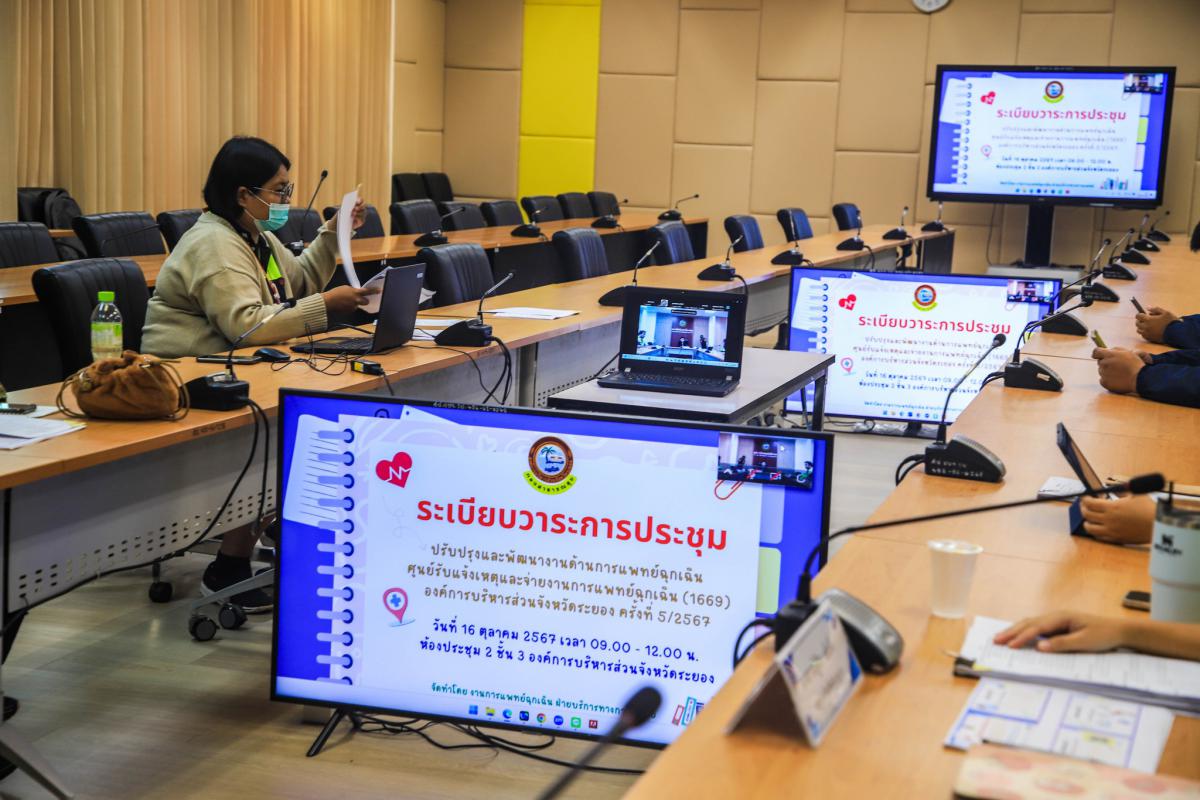 วันที่ 16 ตุลาคม 2567 เวลา 09.00 น. ณ ห้องประชุม 2 ชั้น 3 อบจ.ระยอง นายสมเกียรติ ยุพาพิน รองปลัดองค์การบริหารส่วนจังหวัดระยอง เป็นประธานเปิด “ประชุมศูนย์รับแจ้งเหตุและจ่ายงานการแพทย์ฉุกเฉิน (1669)” เพื่อปรับปรุงและพัฒนางานด้านการแพทย์ฉุกเฉิน ศูนย์รับแจ้งเหตุ และจ่ายงานฯ ครั้งที่ 5/2567 ในแนวทางการปฏิบัติงานของศูนย์ฯ ตลอดจนพิจารณาปัญหาและอุปสรรคในการดำเนินงานของศูนย์ฯ