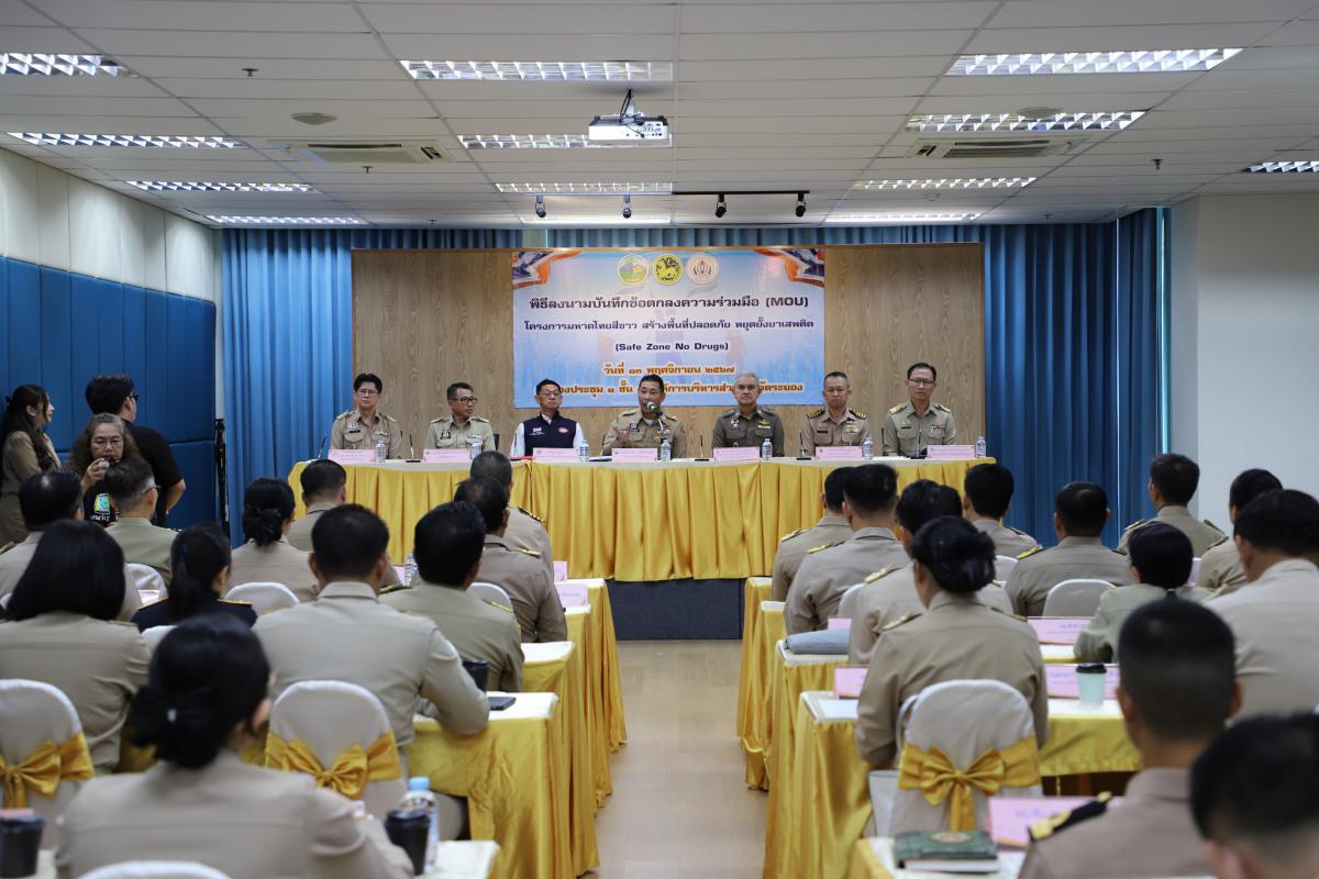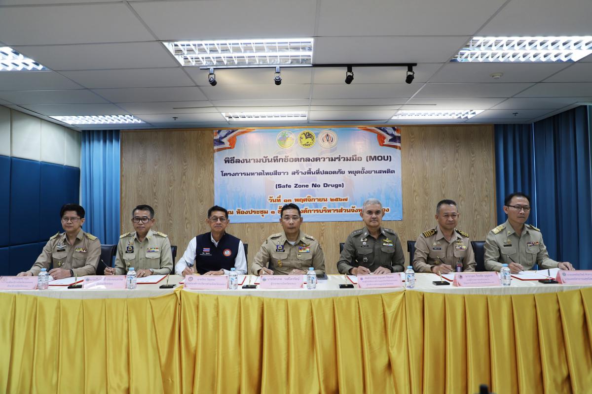 พิธีลงนามบันทึกข้อตกลง (MOU) โครงการมหาดไทยสีขาว สร้างพื้นที่ปลอดภัย หยุดยั้งยาเสพติด (Safe Zone No Drugs)