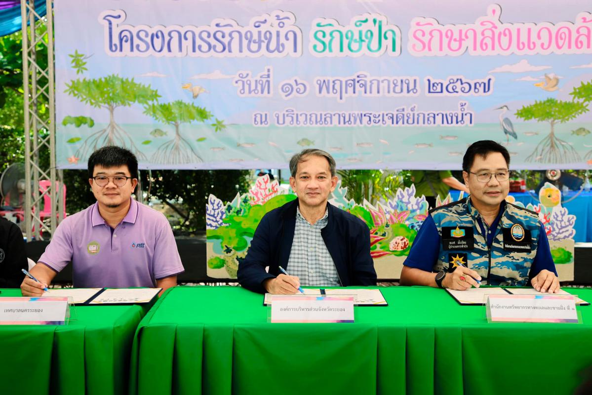 วันเสาร์ที่ 16 พฤศจิกายน 2567 เวลา 9.00 น. นายประสานต์ พฤกษาชาติ รองนายกองค์การบริหารส่วนจังหวัดระยอง (2) ให้เกียรติเข้าร่วมเป็นประธานในพิธีลงนามบันทึก ข้อตกลง (MOU) "โครงการรักษ์น้ำ รักษ์ป่า รักษารักสิ่งแวดล้อม" พร้อมด้วย เทศบาลนครระยอง, สำนักงานทรัพยากรทางทะเลและชายฝั่งที่ 1, เรือนจำกลางระยอง, สำนักงานคุมประพฤติจังหวัดระยอง, โรงเรียนระยองวิทยาคมปากน้ำ, บริษัท สตาร์ ปิโตรเลียม รีไฟน์นิง จำกัด (มหาชน),บริษัท เอสซีจี เคมิคอลส์ จำกัด (มหาชน), บริษัท จี สตีล จำกัด (มหาชน), บริษัท บีแอลซีพี เพาเวอร์ จำกัด, บริษัท เอ็นไวรอนเมนทอล ซิสเต็ม อินติเกรเตอร์ จำกัด, โรงแรมฟอร์จูน แสงจันทร์ บีช ระยอง, โรงแรมซอลท์ บีช โฮเทล ระยอง, กลุ่มอนุรักษ์ฟื้นฟูแม่น้ำระยองและป่าชายเลน, กลุ่มวิสาหกิจชุมชนประมงเก้ายอด, กลุ่มวิสาหกิจชุมชนท่องเที่ยวเชิงนิเวศป่าชายเลนเจดีย์กลางน้ำและแม่น้ำระยอง, และกลุ่มซับบอร์ดระยอง โดยมีนายไพรฑูรย์ รัตนพรวารีสกุล สมาชิกสภาองค์การบริหารส่วนจังหวัดระยอง อำเภอเมืองระยอง เขต 7 เป็นผู้กล่าวต้อนรับ ณ ลานพระเจดีย์กลางน้ำ ตำบลปากน้ำ อำเภอเมืองระยอง จังหวัดระยอง "โครงการรักษ์น้ำ รักษ์ป่า รักษาสิ่งแวดล้อม" จัดกิจกรรมเก็บขยะโดยรอบป่าชายเลนพระเจดีย์กลางน้ำตามเส้นทางไหลของแม่น้ำระยอง เนื่องมาจากการจัดงานสืบสานประเพณีวันลอยกระทง โดยรณรงค์ประชาสัมพันธ์ให้หน่วยงานภาครัฐ ภาคเอกชน ประชาชน บูรณาการร่วมกันเก็บขยะ โดยมีเป้าหมายเก็บขยะให้ได้ไม่น้อยกว่า 1,000 กิโลกรัม ซึ่งเป็นการปลูกฝังจิตสำนึกให้ประชาชนได้ตระหนักถึงความสำคัญในการรักษาทรัพยากรธรรมชาติและสิ่งแวดล้อม เพื่อให้เป็นมรดกทางธรรมชาติอยู่คู่กับจังหวัดระยองต่อไป