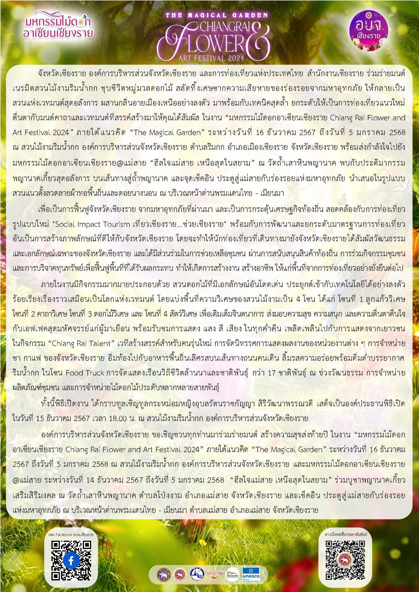 ประชาสัมพันธ์การจัดงาน "มหกรรมไม้ดอกอาเซียนเชียงราย ๒๐๒๔"