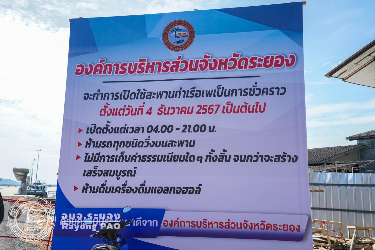 ภาพบรรยากาศการการเปิดใช้บริการสะพานท่าเรือเพชั่วคราวในวันแรก ซึ่งองค์การบริหารส่วนจังหวัดระยอง เปิดใช้สะพานท่าเทียบเรือเพได้เป็นการชั่วคราวตั้งแต่วันที่ 4 ธันวาคม 2567 เป็นต้นไป และเปิดทำการในเวลา 04.00-21.00 น. โดยมีข้อปฎิบัติคือ ห้ามรถทุกชนิดวิ่งบนสะพาน ห้ามดื่มเครื่องดื่มแอลกอฮอลก์ และไม่มีการเก็บค่าธรรมเนียมใดๆทั้งสิ้น จนกว่าจะสร้างเสร็จสมบูรณ์