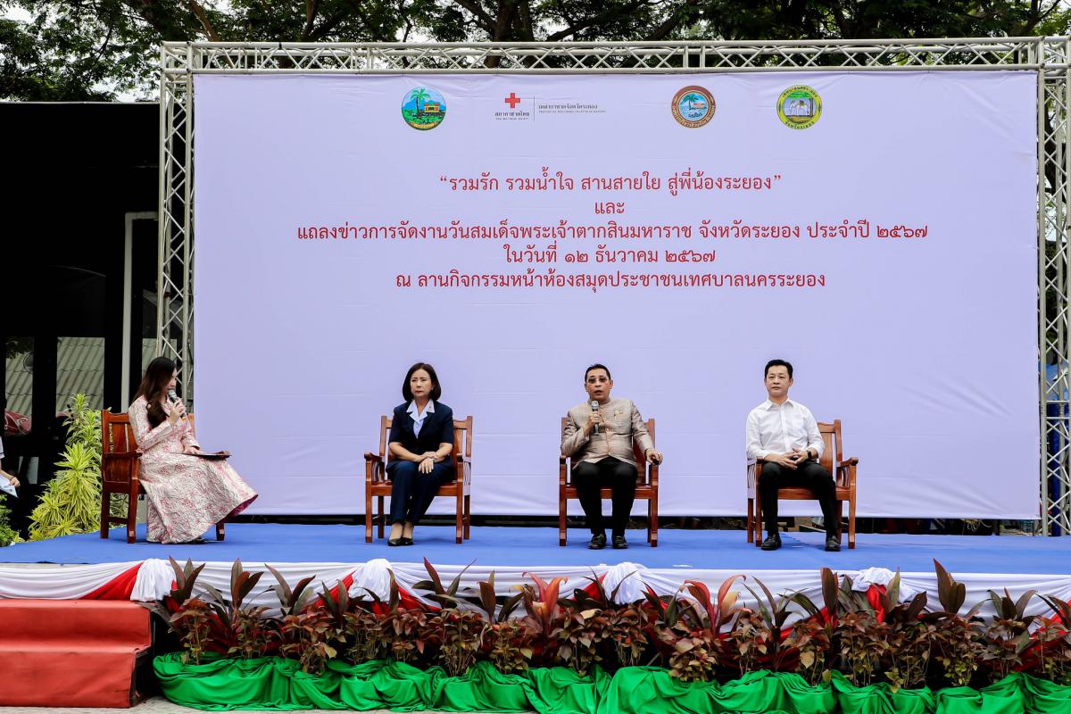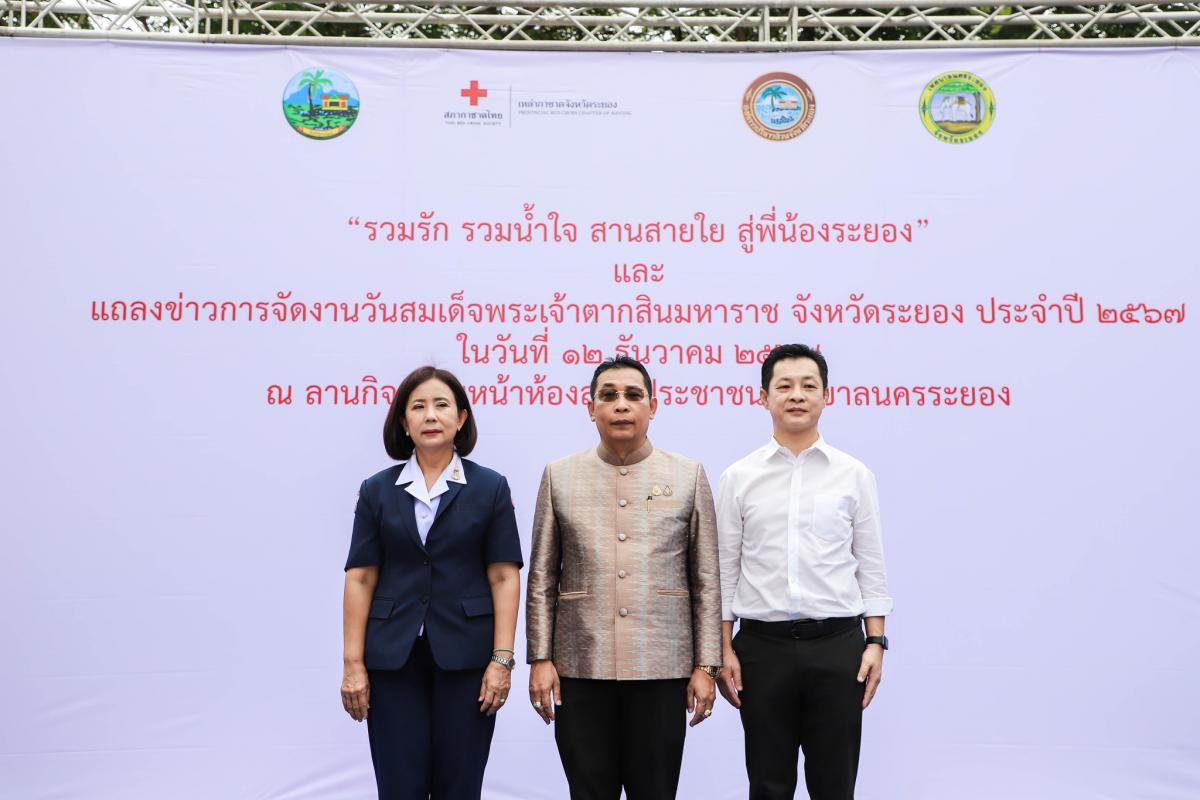 วันที่ 12 ธันวาคม 2567 เวลา 08.30 น. ณ ลานกิจกรรมหน้าห้องสมุดประชาชนเทศบาลนครระยอง นายไตรภพ วงศ์ไตรรัตน์ ผู้ว่าราชการจังหวัดระยอง เป็นประธานแถลงข่าวการจัดงานวันสมเด็จพระเจ้าตากสินมหาราชและงานกาชาดจังหวัดระยอง ประจำปี 2567 พร้อมด้วย นายกิตติ เกียรติ์มนตรี รองนายกองค์การบริหารส่วนจังหวัดระยอง (1) นางชนินันท์ วงศ์ไตรรัตน์ นายกเหล่ากาชาดจังหวัดระยอง ร่วมด้วยคณะกรรมการเหล่ากาชาดจังหวัดระยอง คณะผู้บริหาร หัวหน้าส่วนราชการ ผู้แทนหน่วยงานภาครัฐและภาคเอกชน เข้าร่วมงานแถลงข่าวโดยพร้อมเพรียงกัน งานวันสมเด็จพระเจ้าตากสินมหาราชและงานกาชาดจังหวัดระยองมีวัตถุประสงค์ในการจัดงาน เพื่อเป็นการน้อมรำลึกในเกียรติประวัติเกียรติคุณและสำนึกในพระมหากรุณาธิคุณ ของสมเด็จพระเจ้าตากสินมหาราช อีกทั้งเป็นการส่งเสริมการท่องเที่ยว กระตุ้นเศรษฐกิจและกระจายรายได้ให้กับท้องถิ่นต่างๆในจังหวัดระยอง โดยงานวันสมเด็จพระเจ้าตากสินมหาราชและงานกาชาดจังหวัดระยอง จะจัดขึ้นตั้งแต่วันที่ 28 ธันวาคม 2567 ไปจนถึง วันที่ 3 มกราคม 2568 รวมทั้งสิ้น 7 วัน 7 คืน ณ สนามกีฬากลางจังหวัดระยอง อำเภอเมืองระยอง จังหวัดระยอง