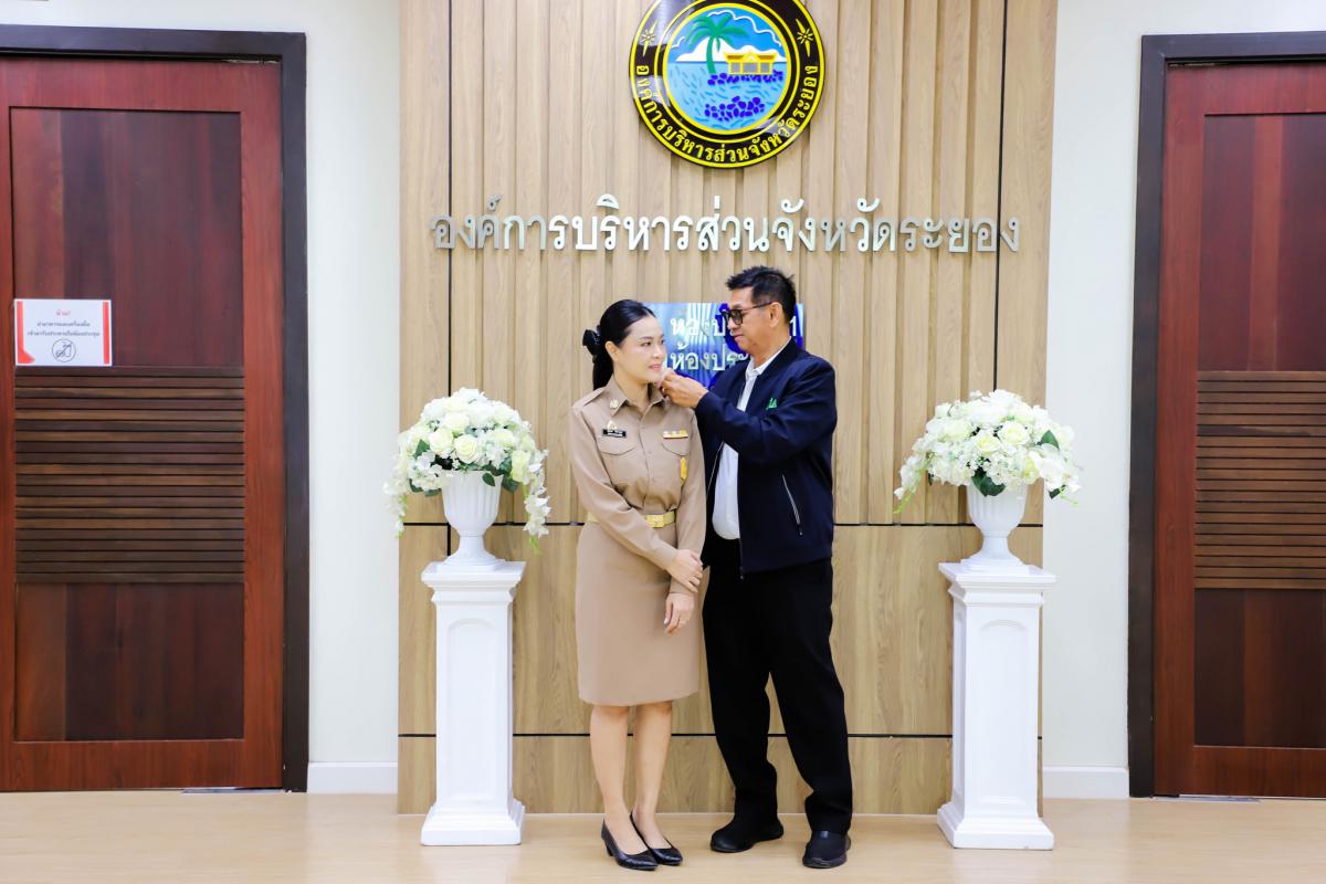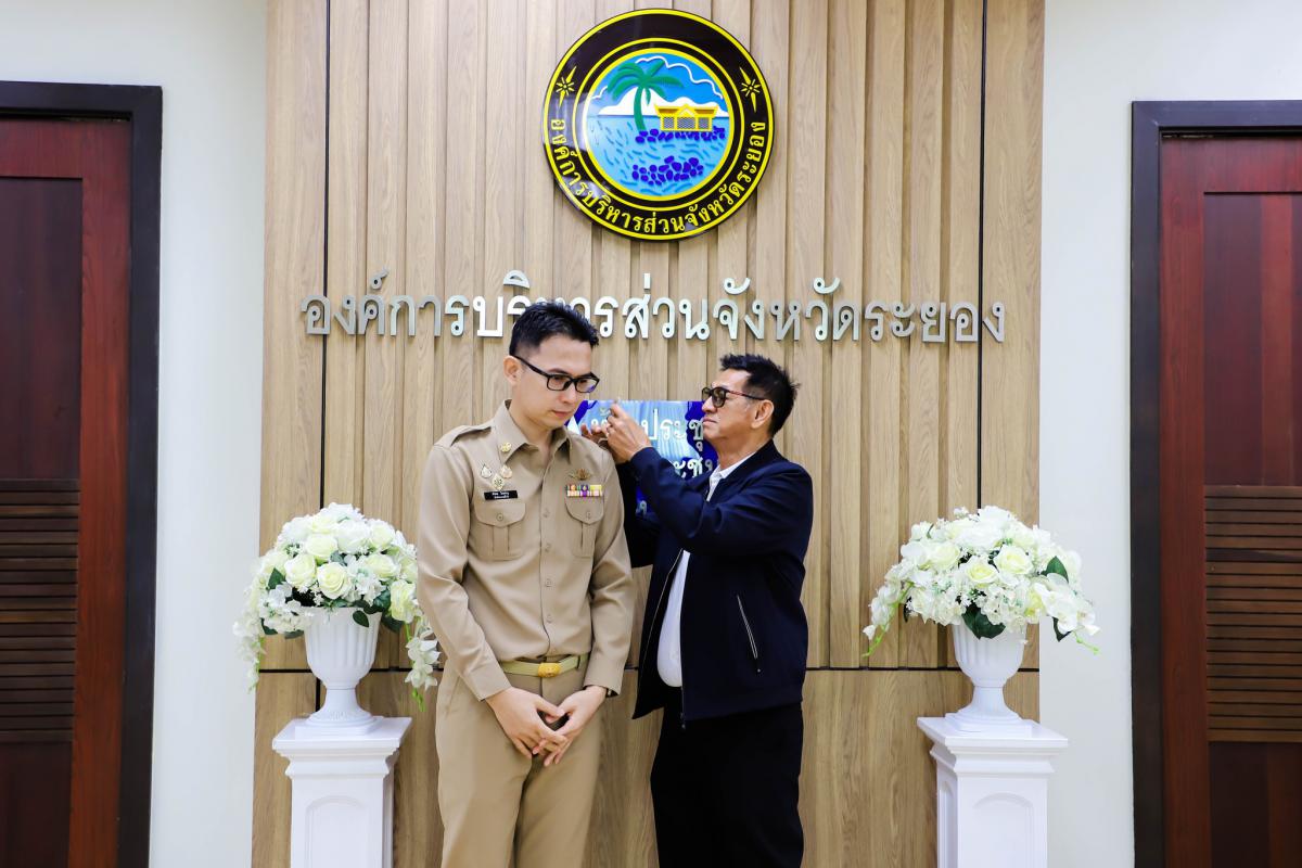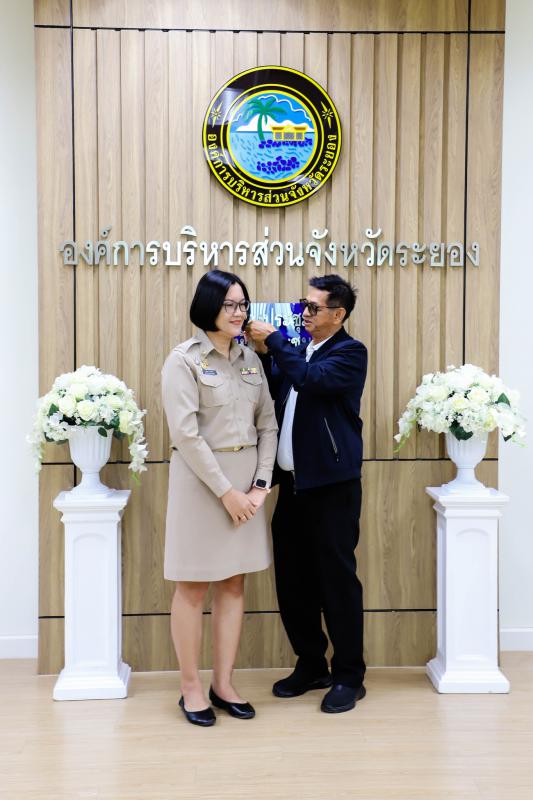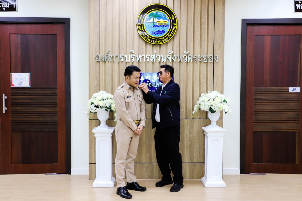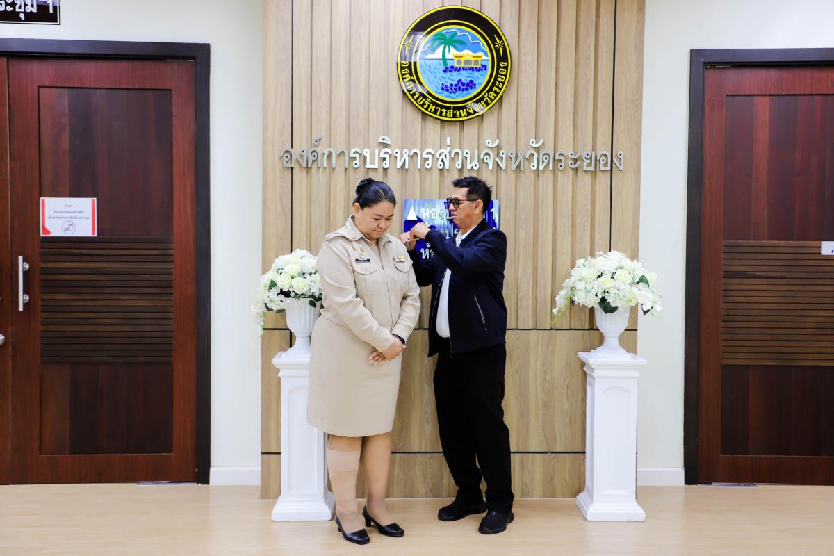 การรายงานตัวข้าราชการและข้าราชการครู องค์การบริหารส่วนจังหวัดผู้ผ่านการสรรหาให้ดำรงตำแหน่งสายงานผู้บริหาร สังกัดองค์การบริหารส่วนจังหวัดระยอง และได้รับการประดับอินธนู
