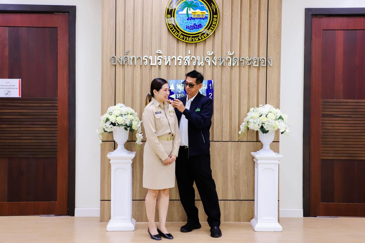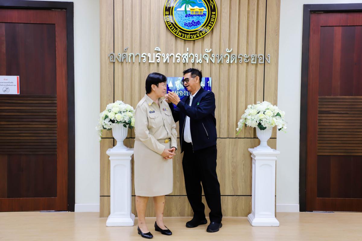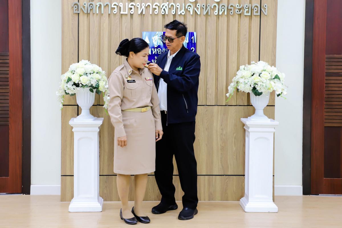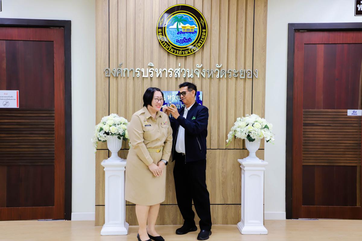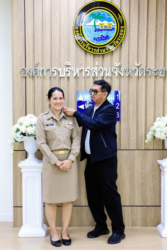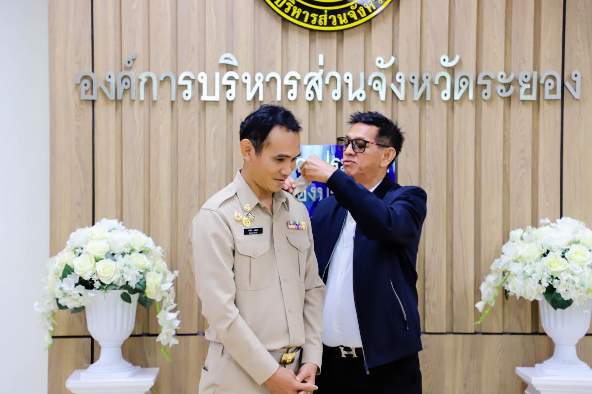 การรายงานตัวข้าราชการและข้าราชการครู องค์การบริหารส่วนจังหวัดผู้ผ่านการสรรหาให้ดำรงตำแหน่งสายงานผู้บริหาร สังกัดองค์การบริหารส่วนจังหวัดระยอง และได้รับการประดับอินธนู