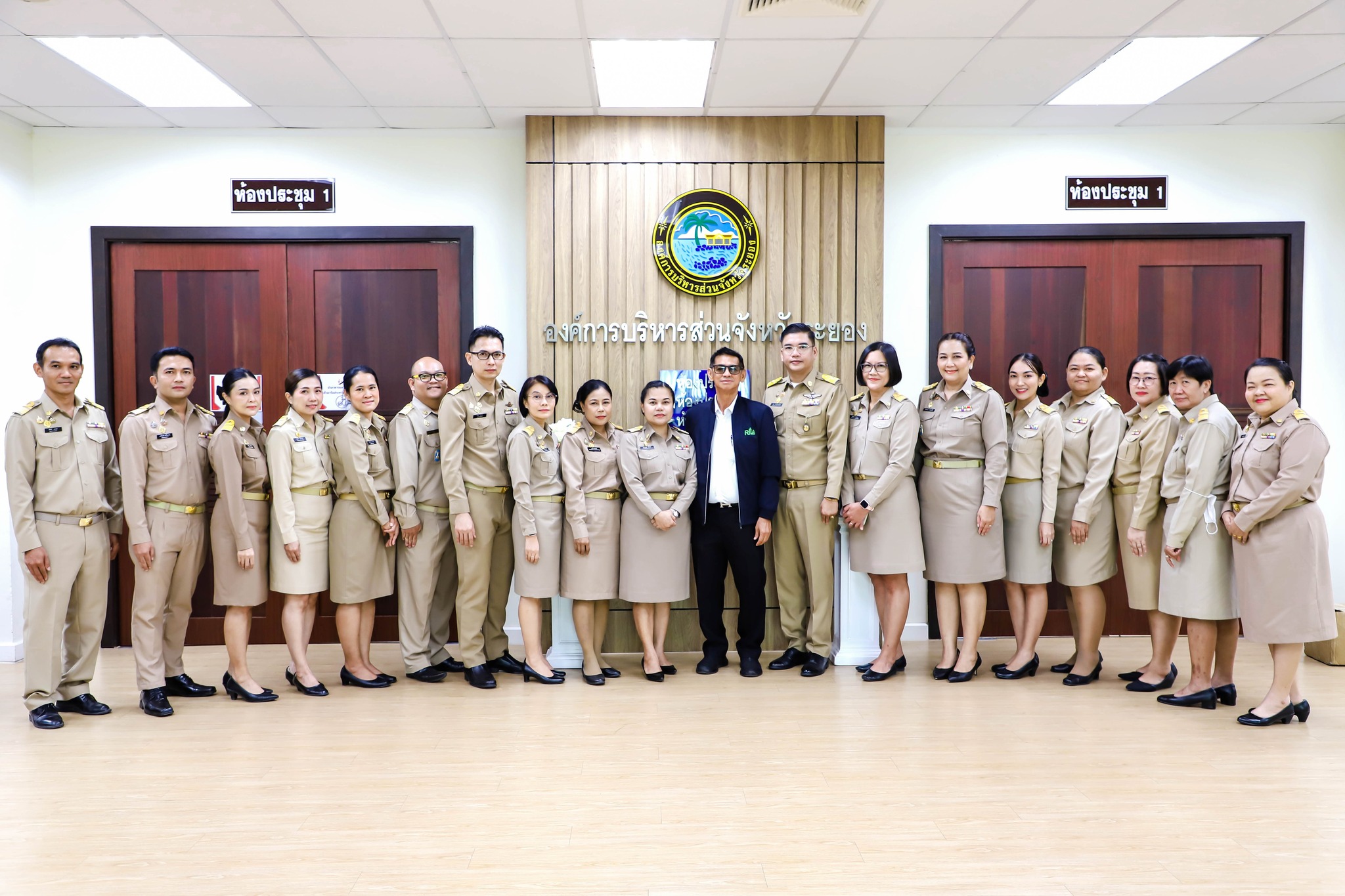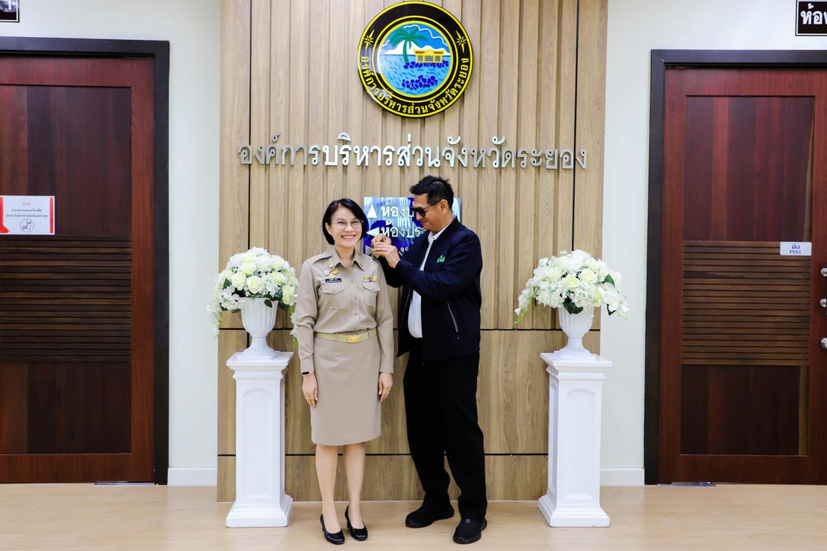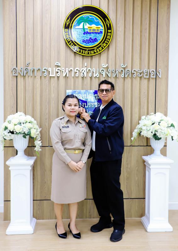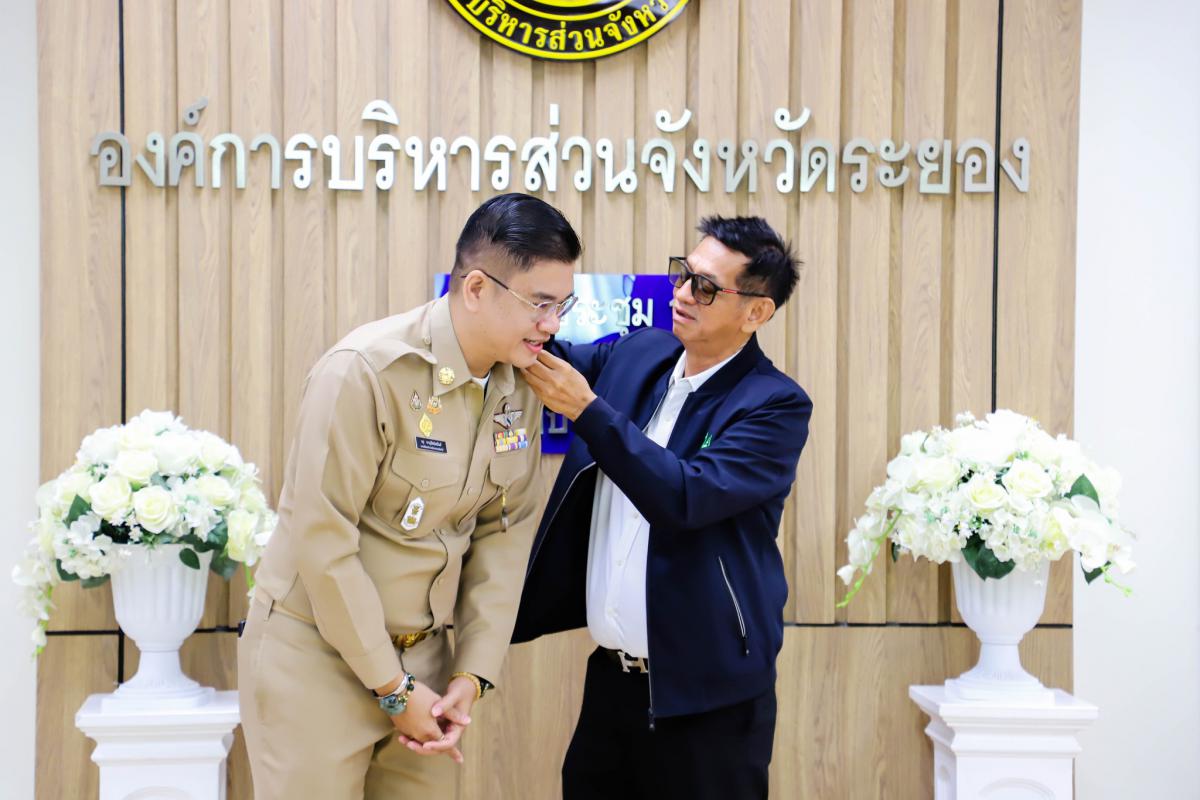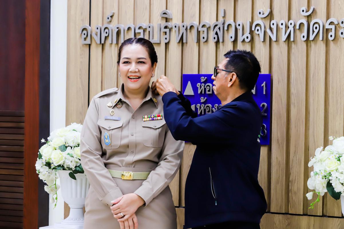 การรายงานตัวข้าราชการและข้าราชการครู องค์การบริหารส่วนจังหวัดผู้ผ่านการสรรหาให้ดำรงตำแหน่งสายงานผู้บริหาร สังกัดองค์การบริหารส่วนจังหวัดระยอง และได้รับการประดับอินธนู
