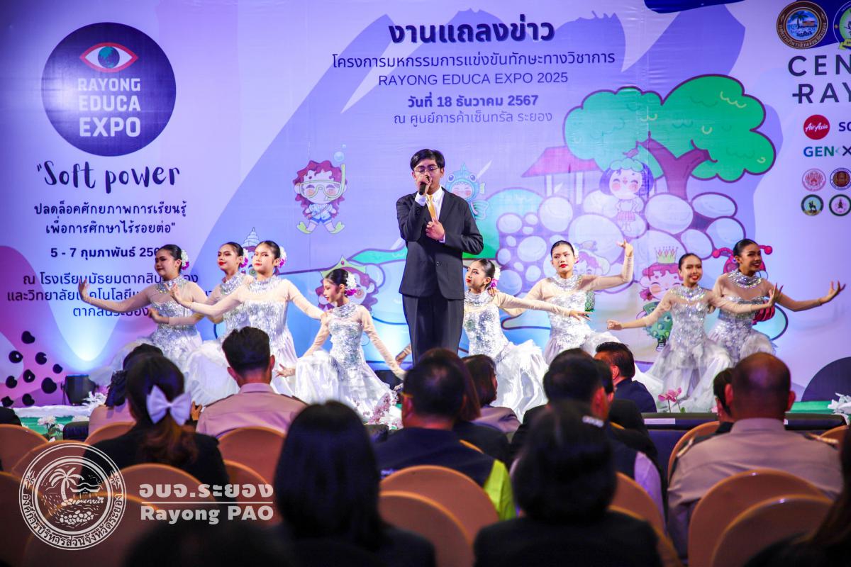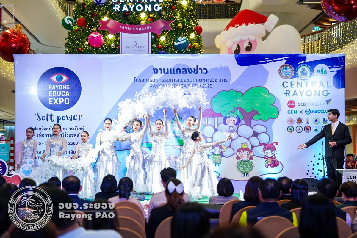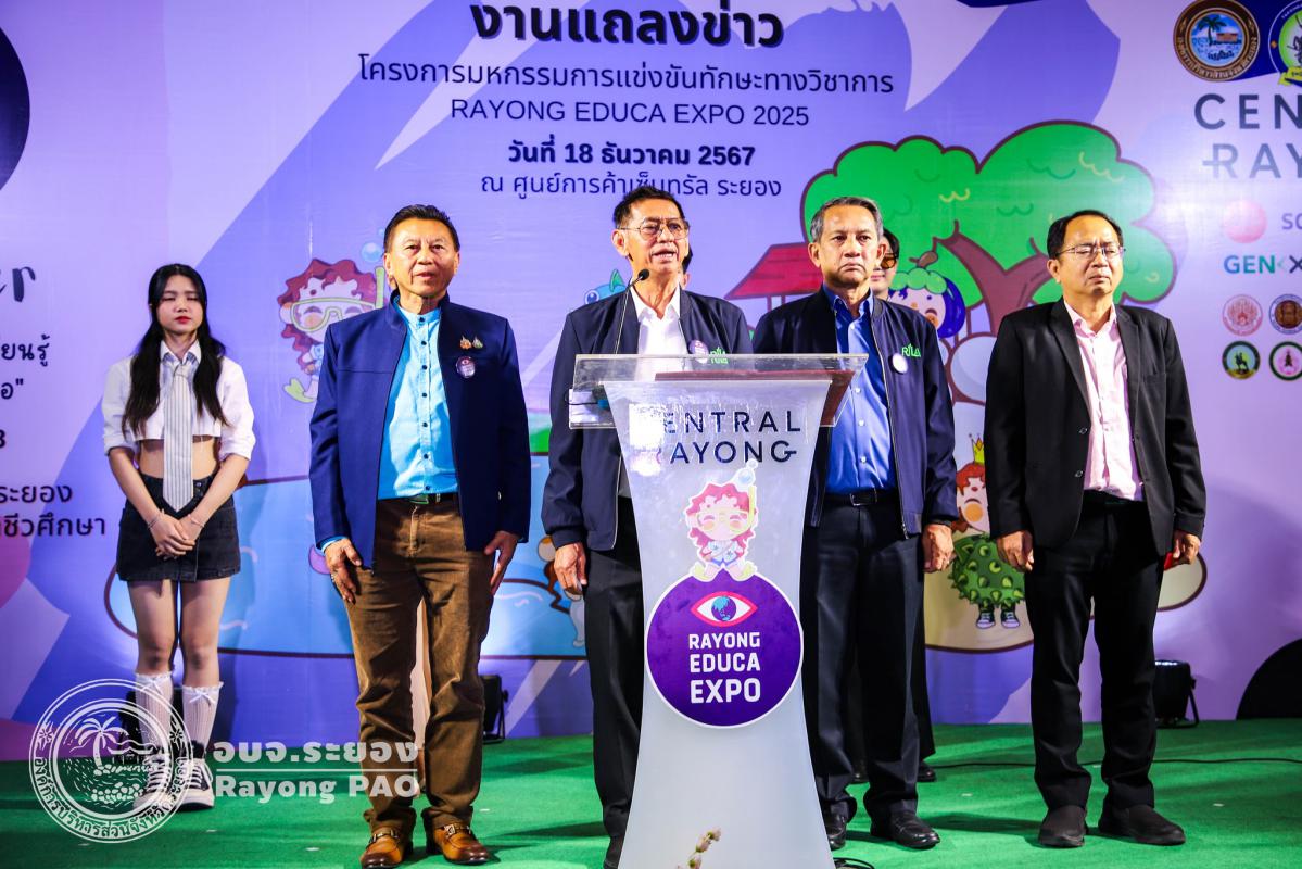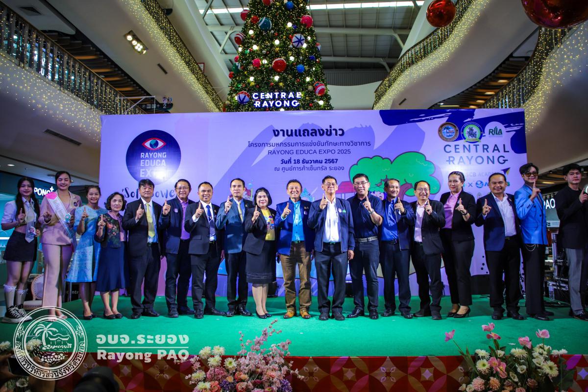 วันที่ 18 ธันวาคม 2567 เวลา 14.00 น. ณ บริเวณลานโปรโมชั่น ชั้น 1 ศูนย์การค้าเซ็นทรัลระยอง นายปิยะ ปิตุเตชะ นายกองค์การบริหารส่วนจังหวัดระยอง เป็นประธานเปิดงานแถลงข่าวงานมหกรรมการศึกษา Rayong Educa Expo 2025 “Soft Power ปลดล๊อคศักยภาพการเรียนรู้ เพื่อการศึกษาไร้รอยต่อ” พร้อมด้วย คณะผู้บริหาร หัวหน้าส่วนราชการ ผู้อำนวยการกอง บริหารสถานศึกษา คณะครู นักเรียน และผู้ที่เกี่ยวข้องเข้าร่วมงานแถลงข่าวฯโดยพร้อมเพรียงกัน ซึ่งโครงการ Rayong Educa Expo เป็นโครงการที่มุ่งเติมเต็มการเรียนรู้ของนักเรียนในจังหวัดระยอง ผ่านการร่วมมือของทางภาครัฐและภาคเอกชน ในการแบ่งปันความรู้ ความเชี่ยวชาญให้แก่นักเรียน และบุคลากรทางการศึกษา รวมถึงประชาชนที่สนใจ โดยมีวัตถุประสงค์เพื่อส่งเสริมนวัตกรรมและความคิดสร้างสรรค์ สร้างโอกาสในการแลกเปลี่ยนความรู้และประสบการณ์ระหว่างครูกับนักเรียนและกิจกรรมเชิงสร้างสรรค์ โดยงานดังกล่าวจะจัดขึ้นระหว่างวันที่ 5-7 กุมภาพันธ์ 2568 ณ โรงเรียนมัธยมตากสินระยอง โรงเรียนอนุบาลนานาชาติตากสินระยอง และวิทยาลัยเทคโนโลยีและอาชีวศึกษาตากสินระยอง ตำบลเชิงเนิน อำเภอเมืองระยอง จังหวัดระยอง
