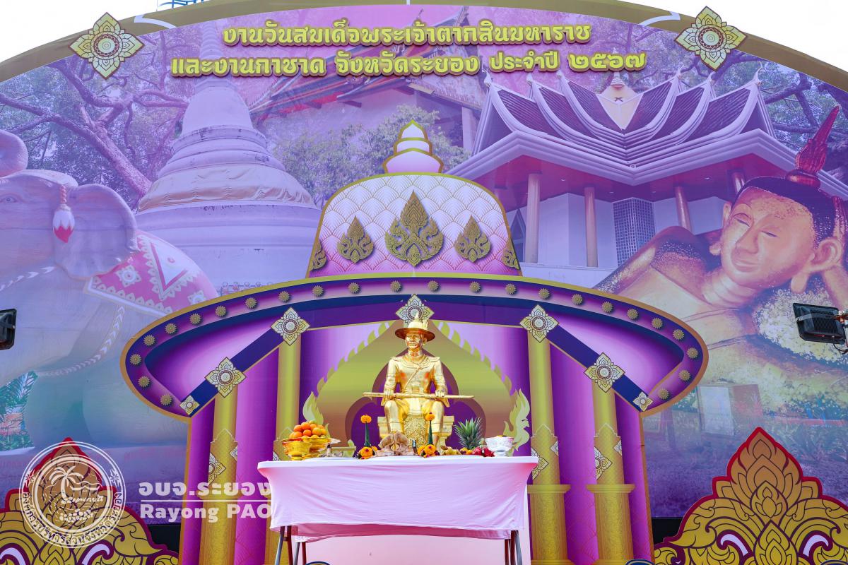 วันที่ 28 ธันวาคม 2567 เวลา 07.00 น. นายสุรินทร์ แสงทอง ปลัดองค์การบริหารส่วนจังหวัดระยอง พร้อมด้วย หัวหน้าส่วนราชการ คณะครู ข้าราชการ พนักงานจ้างสังกัด อบจ.ระยอง และนักเรียนโรงเรียนในสังกัด อบจ.ระยอง ร่วมกันตั้งขบวนแห่เคลื่อนที่จากสวนศรีเมือง เคลื่อนขบวนไปยังสนามกีฬากลางจังหวัดระยอง เพื่ออัญเชิญพระพุทธอังคีรส และพระบรมรูปจำลองสมเด็จพระเจ้าตากสินมหาราชขึ้นประดิษฐานบนแท่นพิธี พร้อมทั้งถวายเครื่องสักการะ และทำพิธีบวงสรวงเพื่อเป็นสิริมงคลให้การจัดงานเป็นไปอย่างราบรื่น โดยงานวันสมเด็จพระเจ้าตากสินมหาราช จังหวัดระยอง ประจำปี 2567 จัดขึ้นระหว่างวันที่ 28 ธันวาคม 2567 ถึงวันที่ 3 มกราคม 2568 ณ บริเวณสนามกีฬากลางจังหวัดระยอง อำเภอเมืองระยอง จังหวัดระยอง