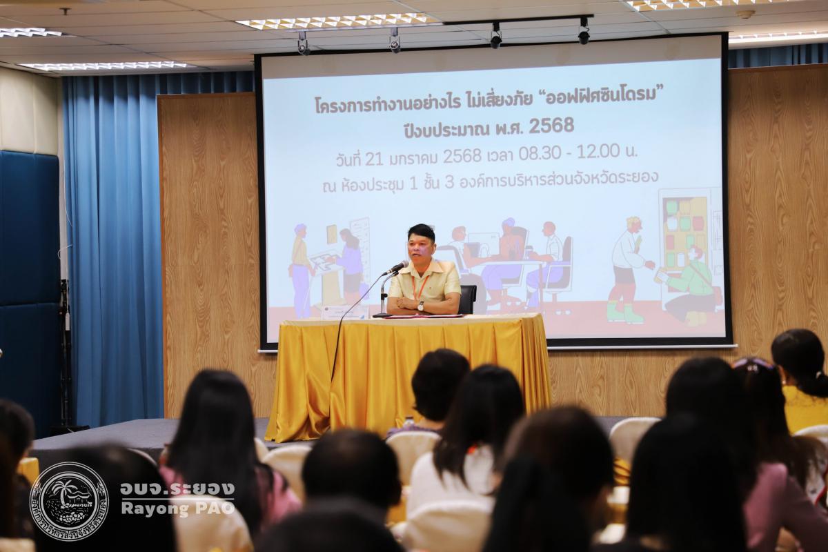 วันที่ 21 มกราคม 2568 เวลา 08.30 น. นายเสรี เพ็งสาท รองปลัดองค์การบริหารส่วนจังหวัดระยอง เป็นประธานโครงการทำงานอย่างไร ไม่เสี่ยงภัย “ออฟฟิศซินโดรม” ปีงบประมาณ พ.ศ. 2568 โดยมี นางณัฐณิชาช์ ตู้จินดา หัวหน้าฝ่ายส่งเสริมสาธารณสุข เป็นผู้กล่าวรายงาน พร้อมด้วยเจ้าหน้าที่ที่เกี่ยวข้องเข้าร่วมโครงการฯ อย่างพร้อมเพรียง ณ ห้องประชุม 1 ชั้น 3 อบจ.ระยอง