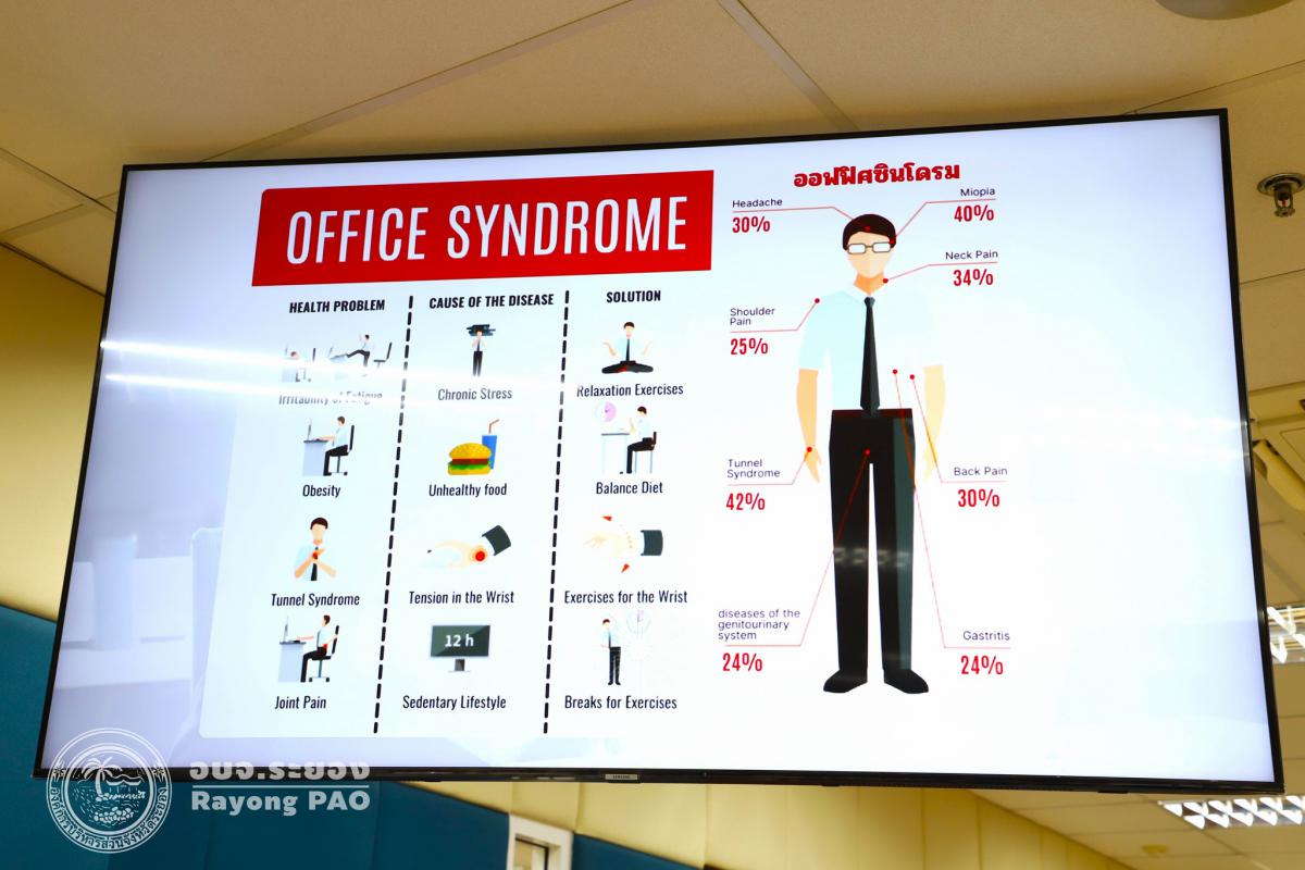 ซึ่งมีวัตถุประสงค์เพื่อสร้างความตระหนักในการเปลี่ยนพฤติกรรมที่เหมาะสมและลดความเสี่ยงต่อการเกิดออฟฟิศซินโดรมของบุคลากรในสังกัดองค์การบริหารส่วนจังหวัดระยอง