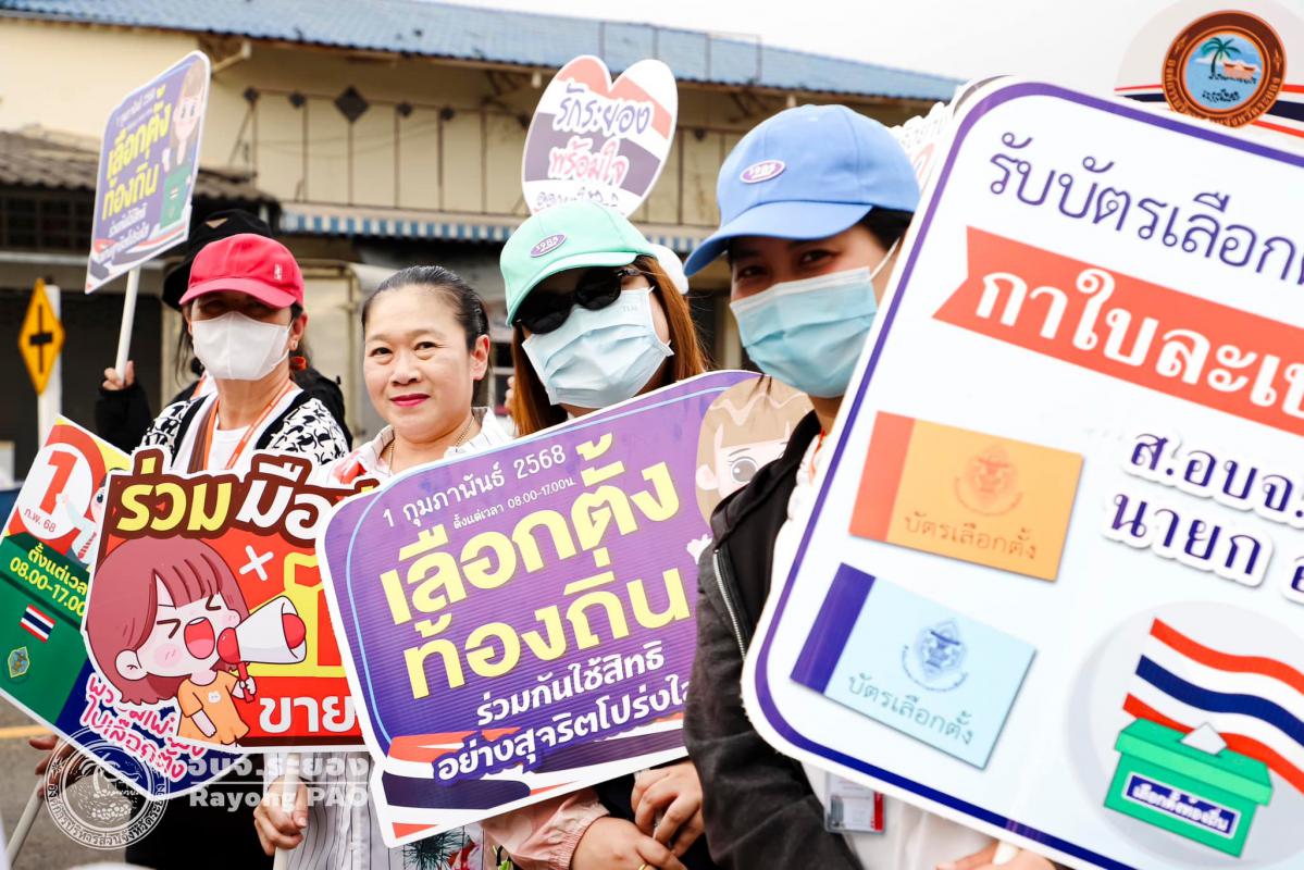 วันที่ 24 มกราคม 2568 เวลา 16.00 น. เจ้าหน้าที่จากองค์การบริหารส่วนจังหวัดระยอง ลงพื้นที่รณรงค์การเลือกตั้งสมาชิกสภาองค์การบริหารส่วนจังหวัดระยอง และนายกองค์การบริหารส่วนจังหวัดระยอง ในบริเวณหน้าตลาด ฮ กอบโชค และพื้นที่บริเวณโดยรอบ เพื่อเป็นการประชาสัมพันธ์เชิญชวน และรณรงค์ให้ประชาชนออกไปใช้สิทธิเลือกตั้งในแต่ละเขตตามที่อยู่ทะเบียนบ้าน ในวันเสาร์ที่ 1 กุมภาพันธ์ 2568 เวลา 08.00 – 17.00 น.