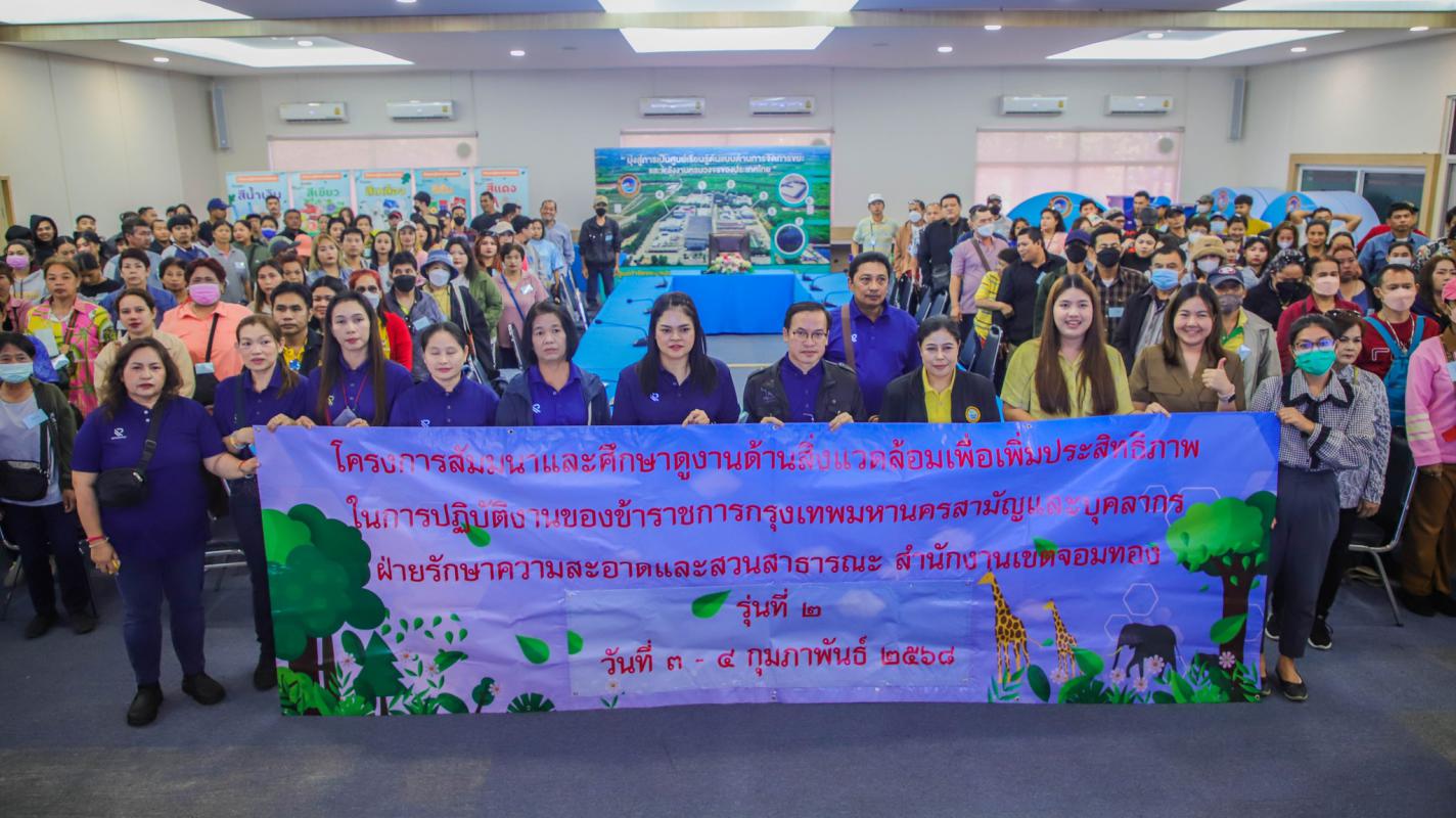 วันที่ 3 กุมภาพันธ์ 2568 เวลา 10.00 น. สำนักงานเขตจอมทอง กรุงเทพมหานคร นำคณะข้าราชการ พนักงาน จำนวน 250 คน เข้าเยี่ยมชมและศึกษาดูงานระบบบริหารจัดหารขยะแบบครบวงจร โดยมีนางสาวจริยา คงเจริญ หัวหน้าฝ่ายจัดการมูลฝอยและสิ่งปฏิกูล กองสาธารณสุข พร้อมด้วยเจ้าหน้าที่จากบริษัท GPSC ร่วมให้การต้อนรับพร้อมทั้งบรรยายให้ความรู้แก่ผู้เข้าศึกษาดูงานดังกล่าว