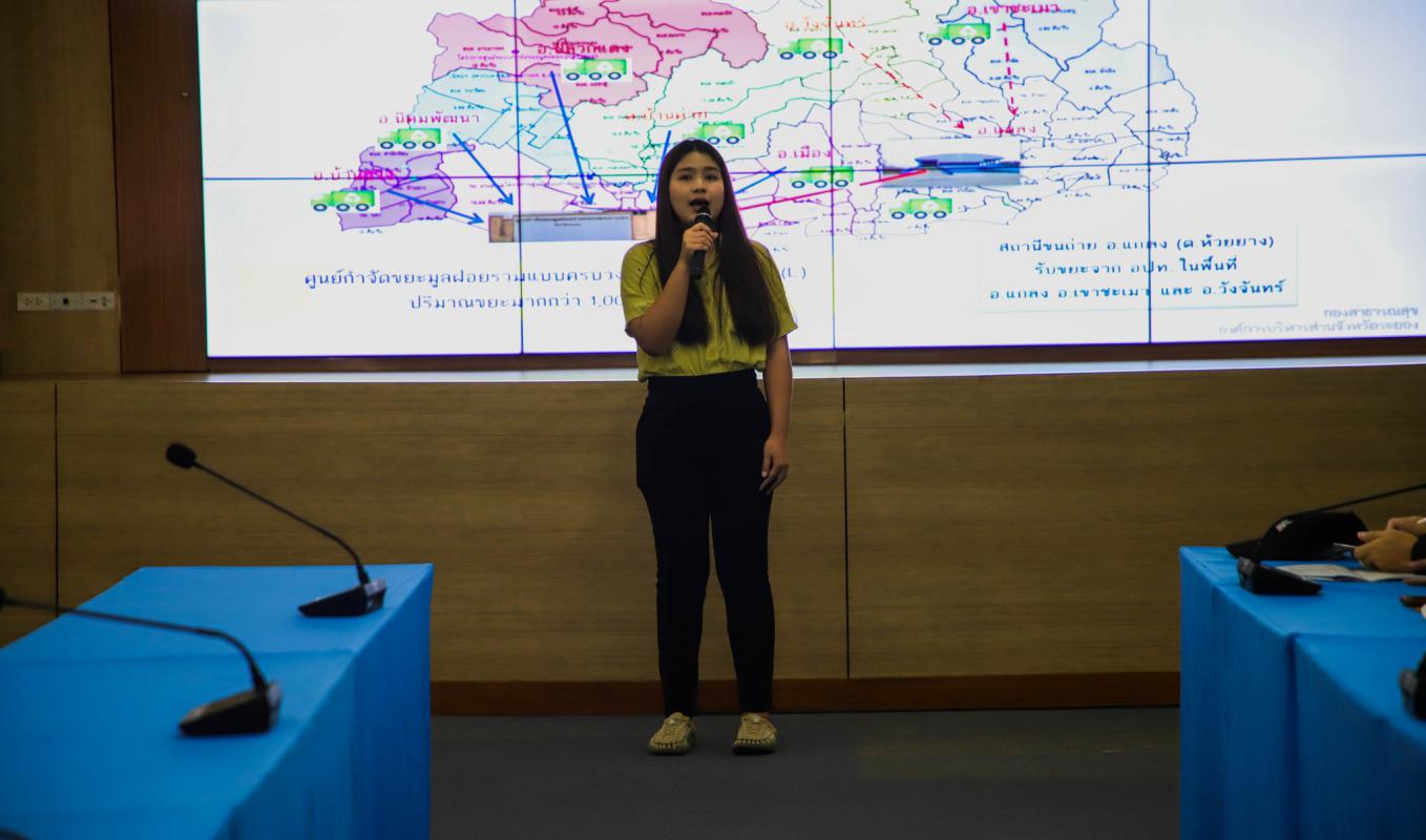 องค์การบริหารส่วนจังหวัดระยอง ได้มีการบริหารจัดการปัญหาขยะมูลฝอยแบบครบวงจร โดยร่วมมือกันระหว่าง อบจ.ระยอง และ อปท.อีก 67 แห่ง จะถูกขนย้ายเข้ามาที่ศูนย์ฯวันละประมาณ 1,000 ตัน ขยะที่สามารถใช้เป็นเชื้อเพลิง หรือ Refuse Derived Fuel หรือขยะ RDF แยกเข้าสู่โรงไฟฟ้า GPSC ปริมาณ 500 ตัน/วัน หรือ 170,000 ตันต่อปี ซึ่งโรงไฟฟ้า RDF มีกำลังการผลิต 9.8 เมกะวัตต์ ได้เดินเครื่องเชิงพาณิชย์(COD) มาตั้งแต่เดือนพฤษภาคม 2564 เพื่อจำหน่ายไฟฟ้าให้กับการไฟฟ้าส่วนภูมิภาค(PEA) และขยะจากสารอินทรีย์ต่างๆ เช่น เศษผัก เศษอาหาร ใบไม้ เปลือกผลไม้ทุกชนิด (320 ตัน) ซึ่งจะมีกระบวนการหมักเป็นแก๊ส แล้วเอากากที่เหลือมาทำเป็นปุ๋ย อีกส่วนหนึ่งแยกไปสู่เครื่องคัดแยกขยะ ปริมาณ 300 ตัน/วัน ขยะรีไซเคิล (40 ตัน) และขยะอื่นๆที่ไม่สามารถนำไปใช้ประโยชน์ได้ จึงต้องนำไปฝังกลบอย่างถูกวิธี ในส่วนของศูนย์การเรียนรู้ฯ ซึ่งผู้เข้าศึกษาดูงานได้เข้าเยี่ยมชมศูนย์การเรียนรู้ ชมการคัดแยกขยะชุมชนและเกมส์จำลองต่างๆ เพื่อให้เกิดความเข้าใจถึงวิธีการดำเนินการของโรงไฟฟ้าจากเชื้อเพลิง RDF ”