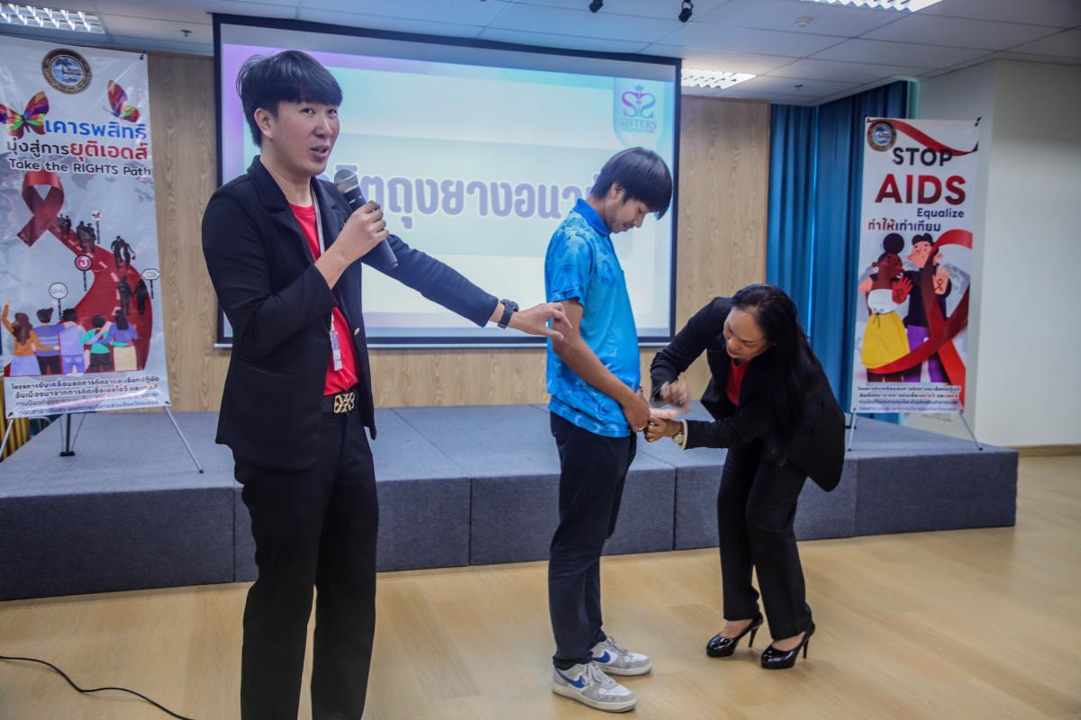 ซึ่งเอชไอวีและเอดส์แตกต่างกันตรงที่เอชไอวี คือชื่อของไวรัสที่เข้ามาทำอันตรายต่อร่างกาย ส่วนเอดส์ คือระยะอาการของโรค ผู้มีเชื้อเอชไอวีในร่างกายอาจจะแสดงความผิดปกติของร่างกายเล็กน้อยหรือไม่แสดงอาการเลยก็ได้ และสามารถใช้ชีวิตประจำวันได้ปกติ แต่ผู้ป่วยเอดส์คือระยะที่ร่างกายมีโรคแทรกซ้อนเข้ามาในร่างกายทำให้ป่วยหรือเสียชีวิตได้ ซึ่งหากตรวจพบการติดเชื้อเอชไอวีได้เร็วและเริ่มการรักษาได้เร็วก็จะทำให้ลดอาการป่วย ลดการเสียชีวิต และลดโอกาสในการถ่ายทอดเชื้อแก่ผู้อื่นได้ จึงแนะนำให้ตรวจอย่างน้อยปีละ 1 ครั้ง โดยมูลนิธิ ซิสเตอร์ ศูนย์ระยอง ได้บรรยายให้ความรู้แก่ผู้เข้าร่วมกิจกรรม พร้อมทำแบบทดสอบความรู้ HIV และลดการตีตราและเลือกปฏิบัติอันเนื่องมาจากการติดเชื้อ และกิจกรรมการตรวจหาการติดเชื้อ HIV และ ซิฟิลิส (Syphilis) โดยการเจาะตรวจที่ปลายนิ้ว (Self Test) และแจกถุงยางอนามัย/สารหล่อลื่น, กิจกรรมให้ความรู้ และตอบคำถามชิงรางวัล